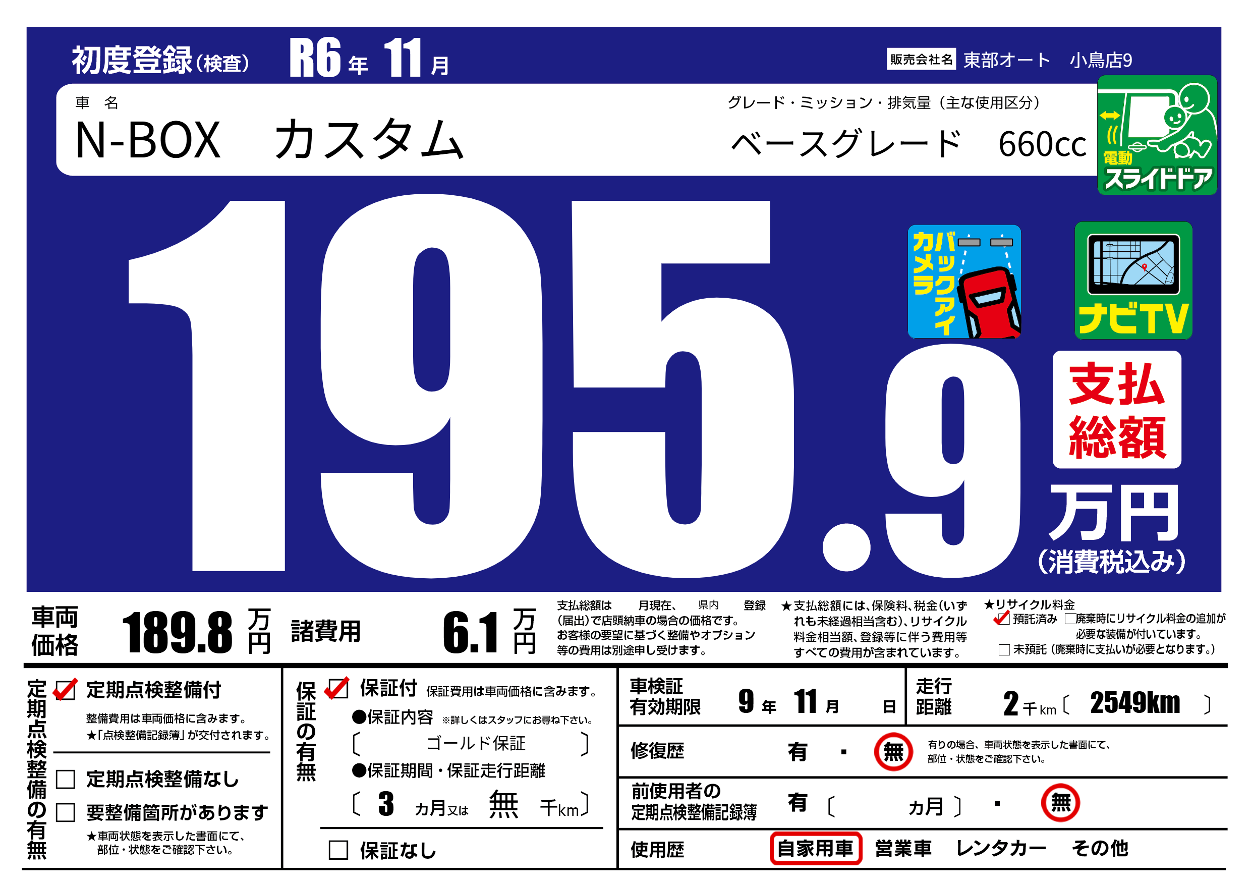 保証付き 保証内容( ゴールド保証) 3ヶ月または(無)千kmまで |