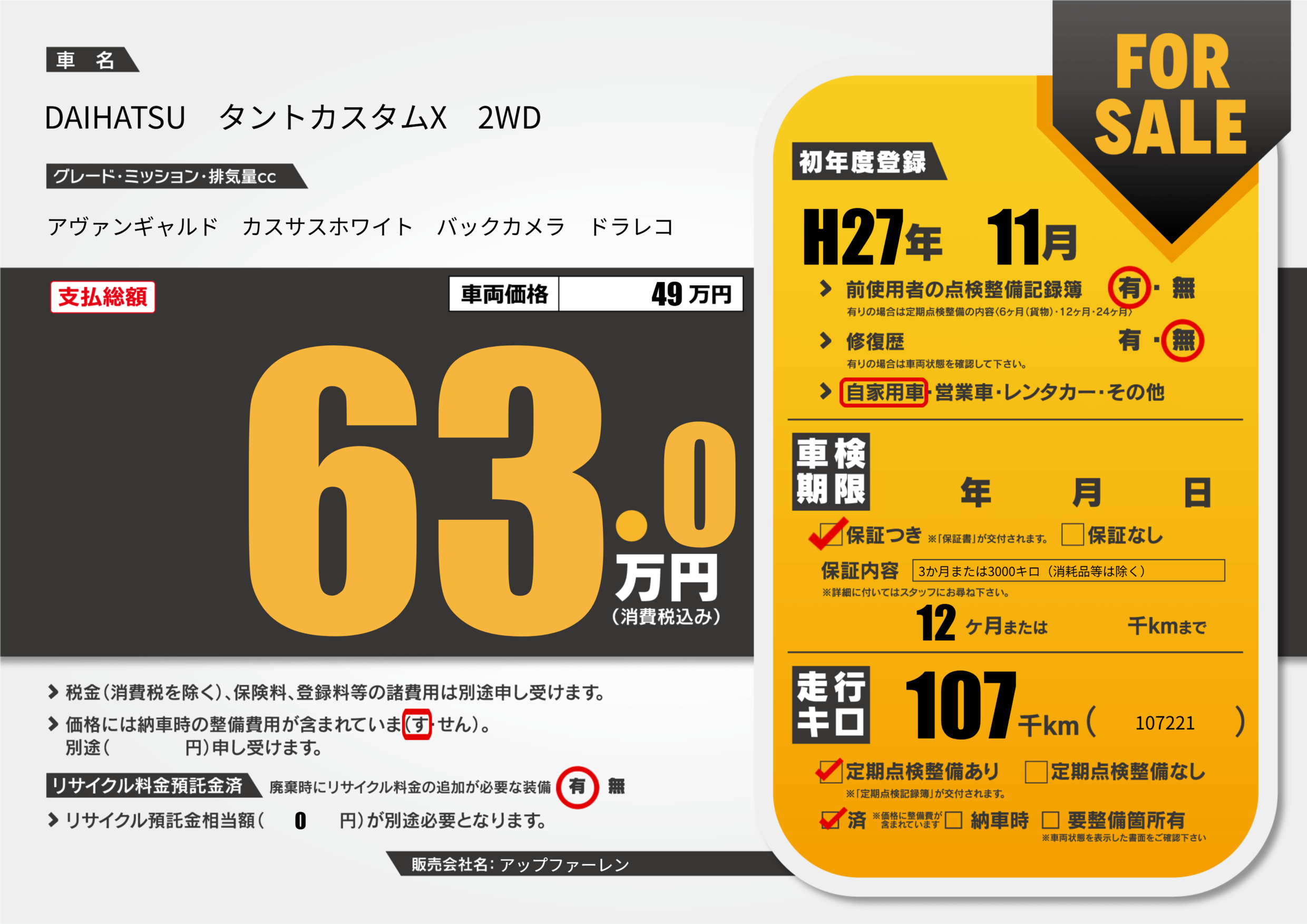 | 定期点検整備 | 定期点検整備あり 定期点検整備済み | ||