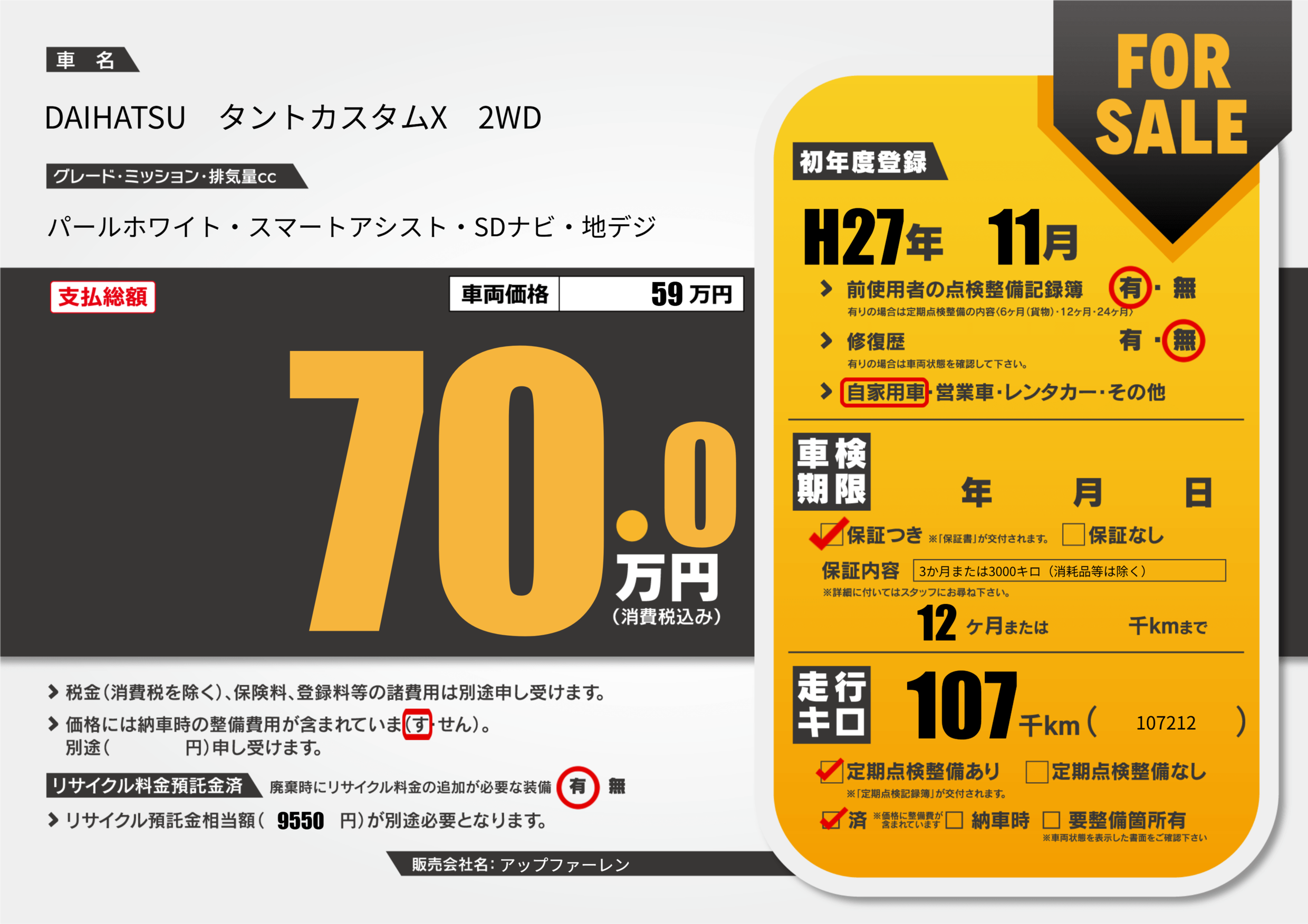 | 定期点検整備 | 定期点検整備あり 定期点検整備済み | ||