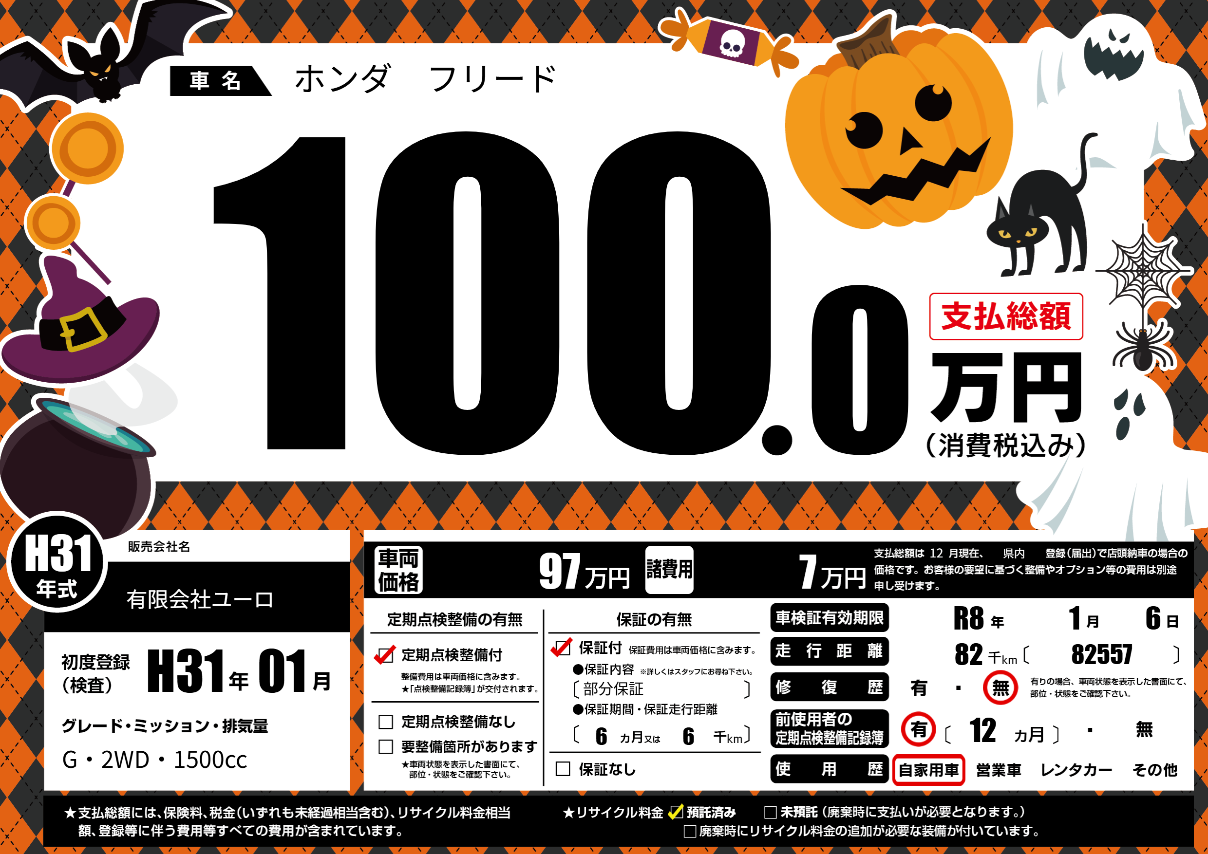 | 車名 | ホンダ フリード | グレード ミッション 排気量 |