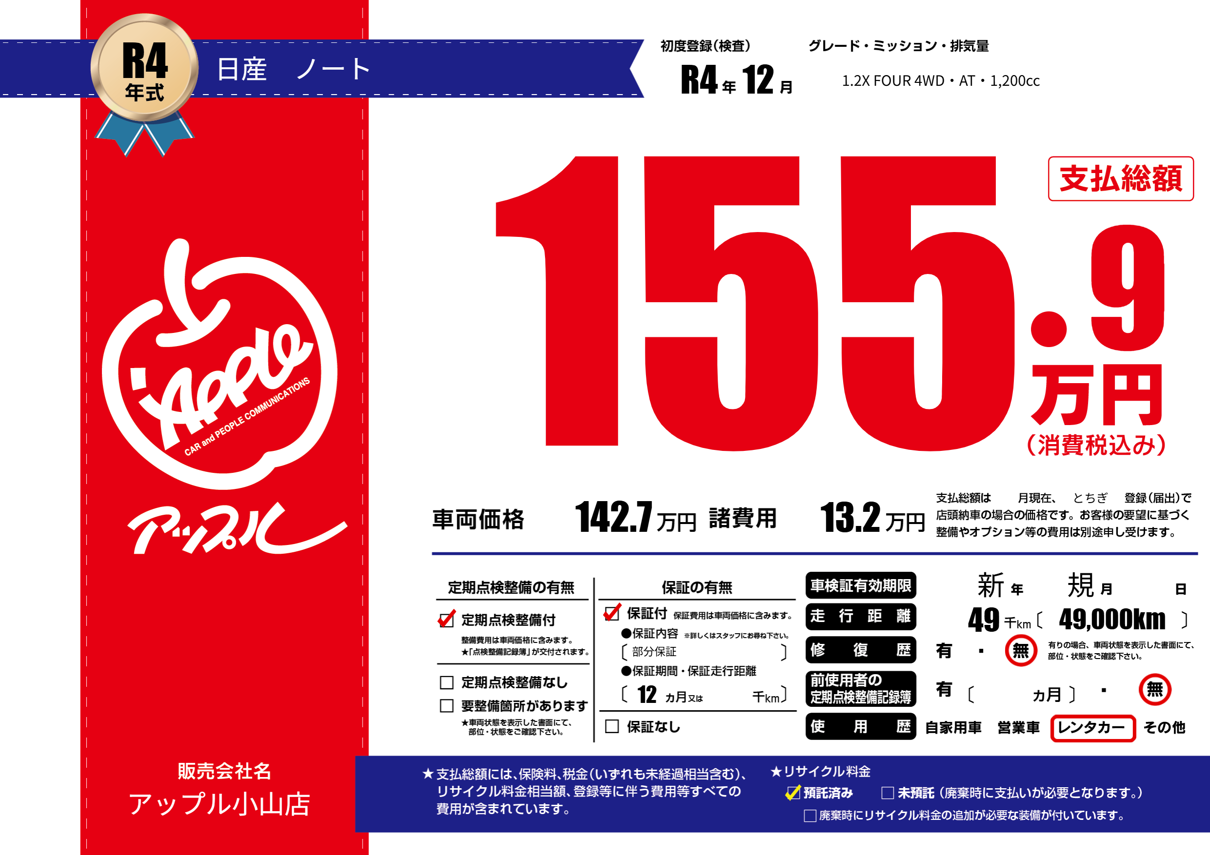 | 走行キロ | 4.9万km | 初年度登録 | R4年12月 |