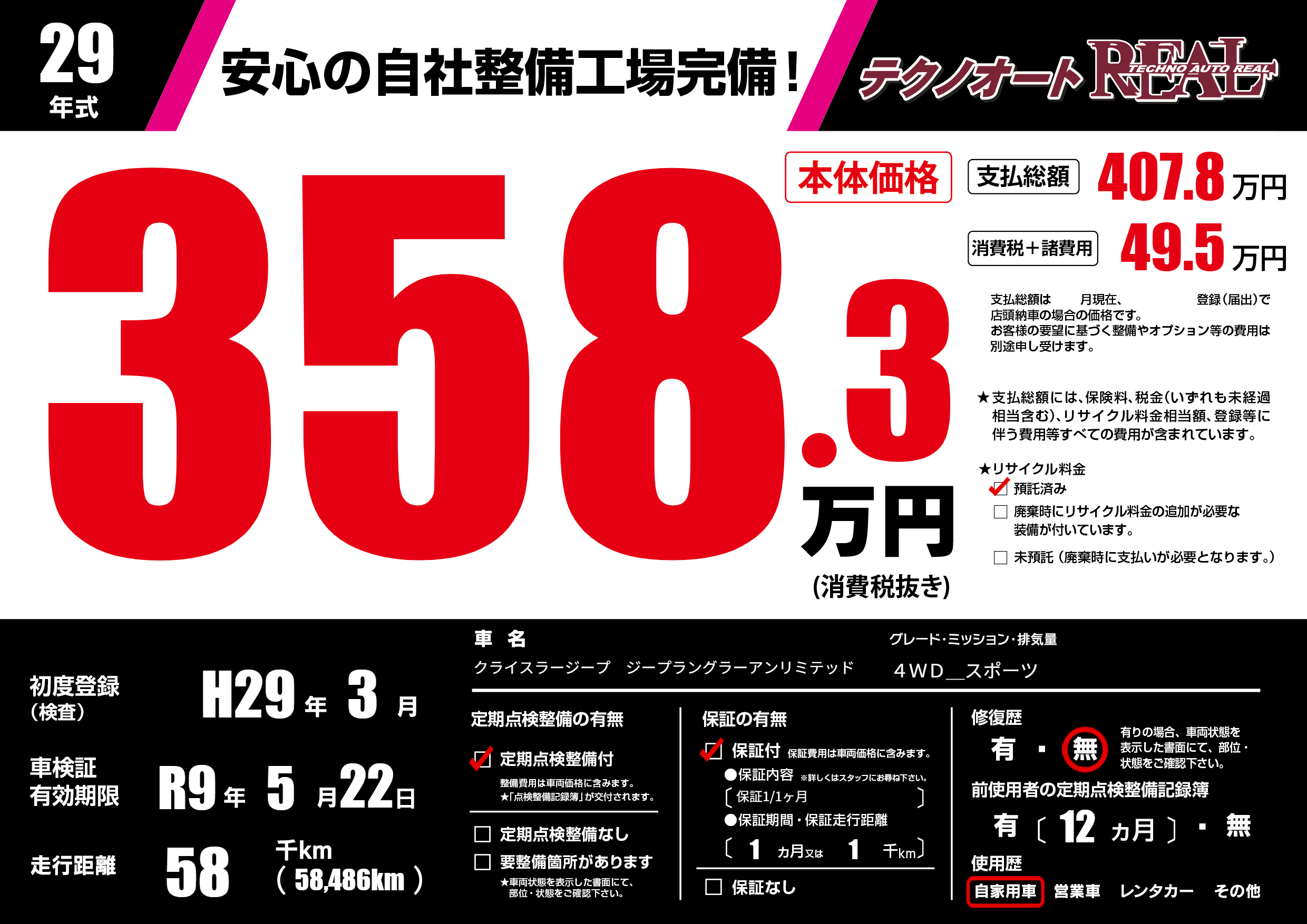 | 走行キロ | 5.8万km | 初年度登録 | H29年3月 |