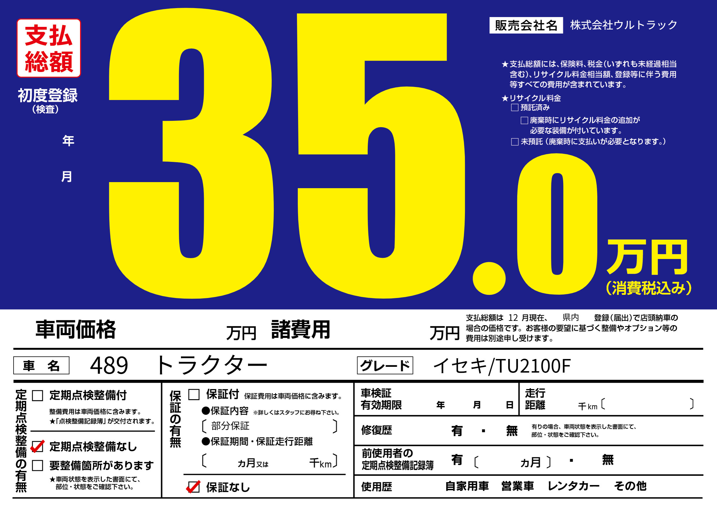保証なし 保証内容(部分保証) ---ヶ月または()千kmまで |