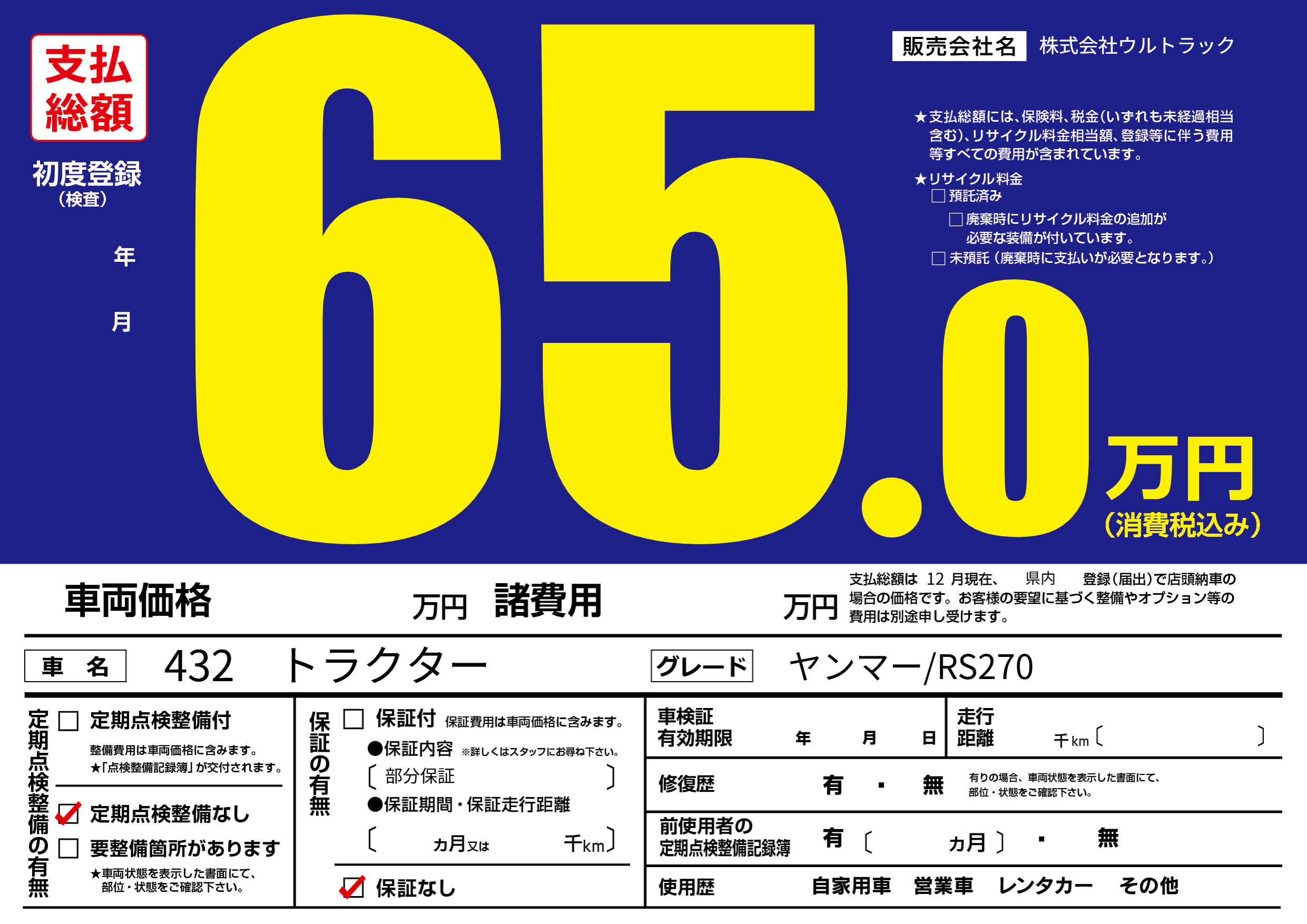 保証なし 保証内容(部分保証) ---ヶ月または()千kmまで |