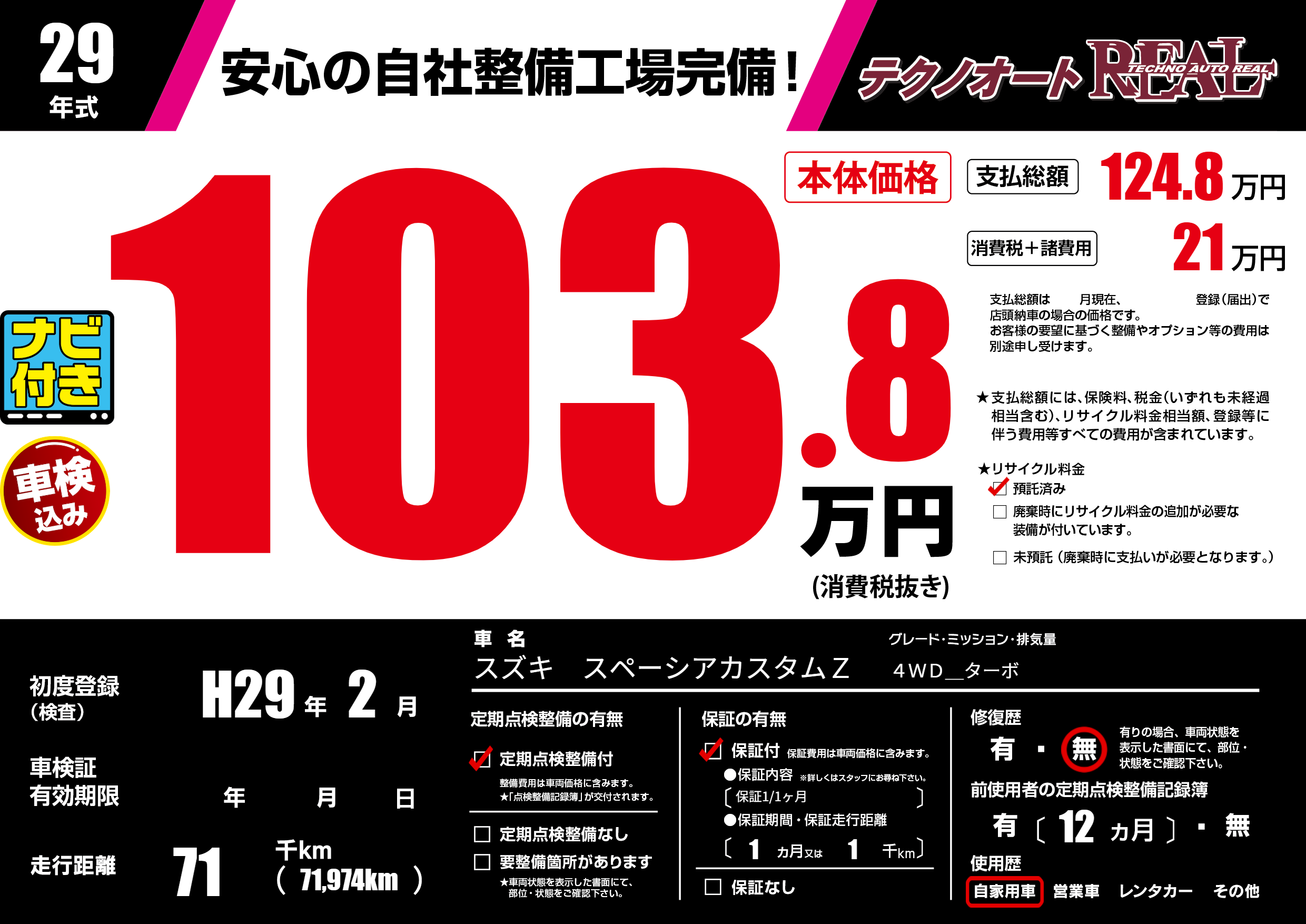 | 定期点検整備 | 定期点検整備あり | ||