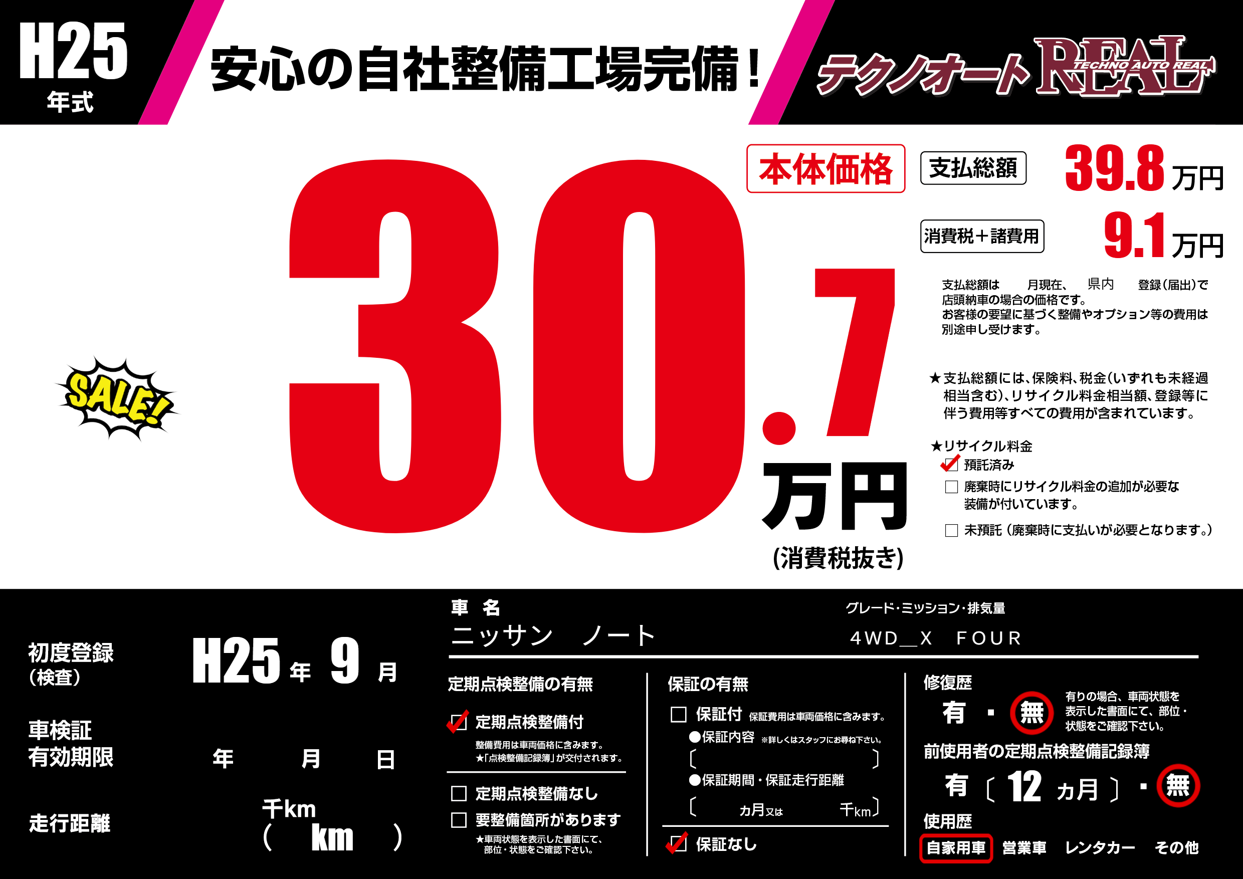 | 走行キロ | - | 初年度登録 | H25年9月 |