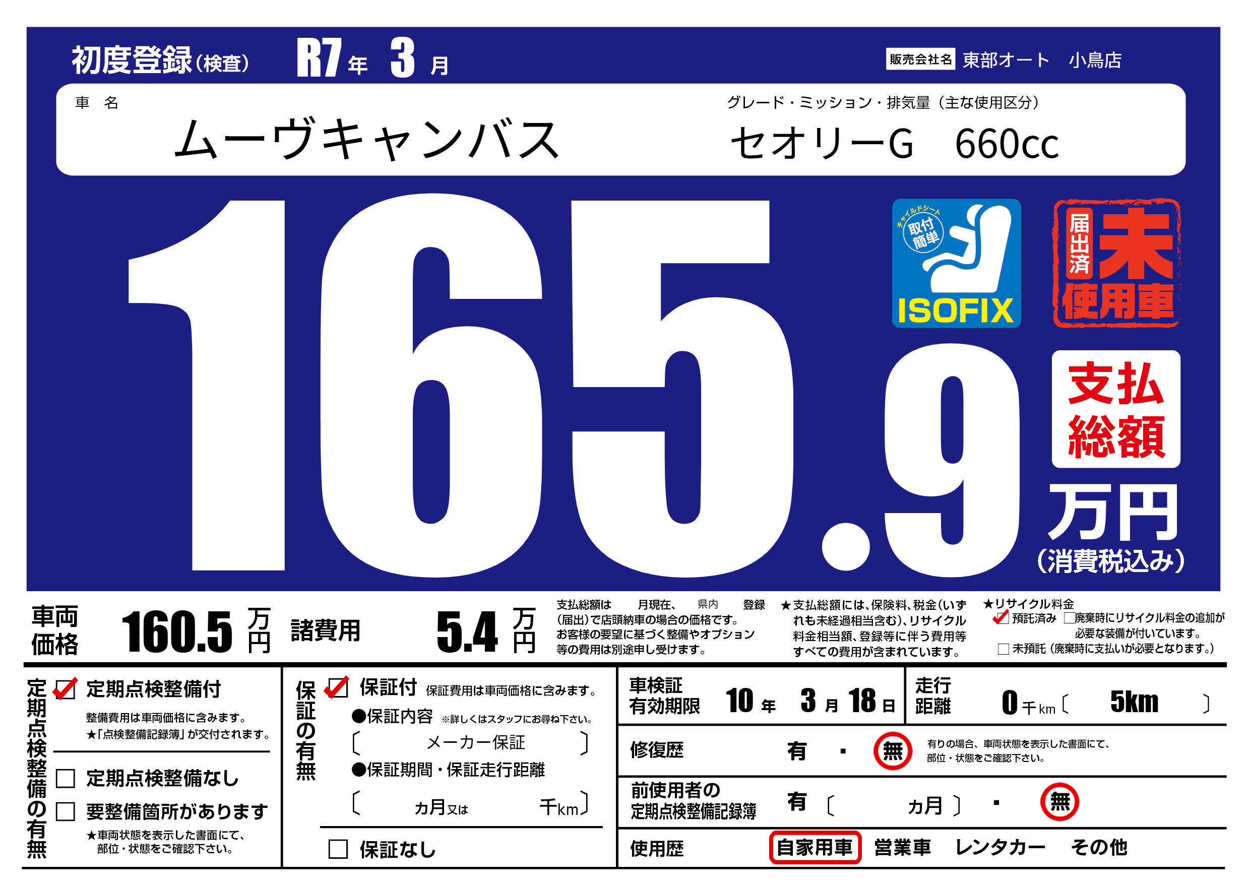 保証付き 保証内容( メーカー保証) ---ヶ月または()千kmまで |