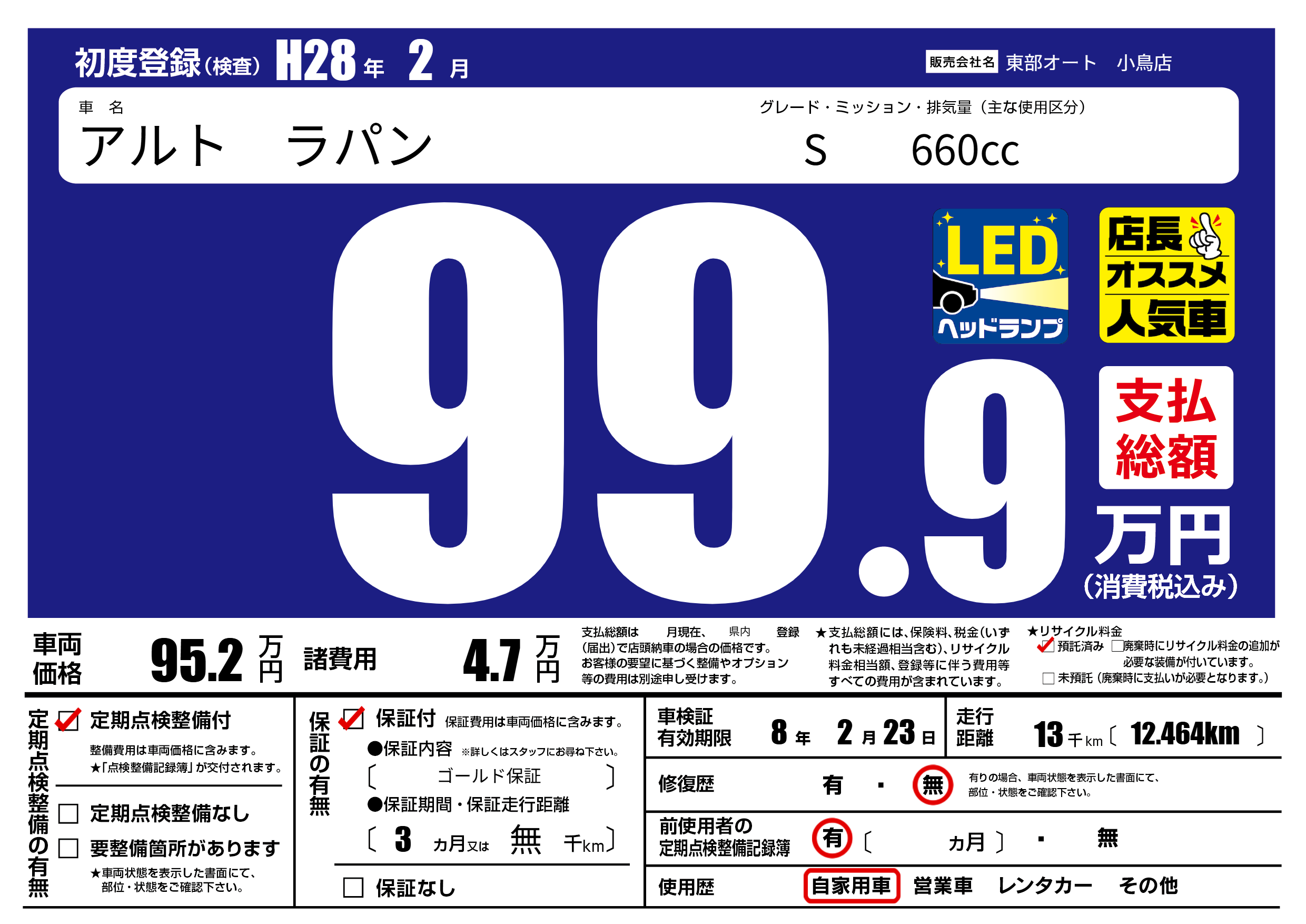 保証付き 保証内容( ゴールド保証) 3ヶ月または(無)千kmまで |