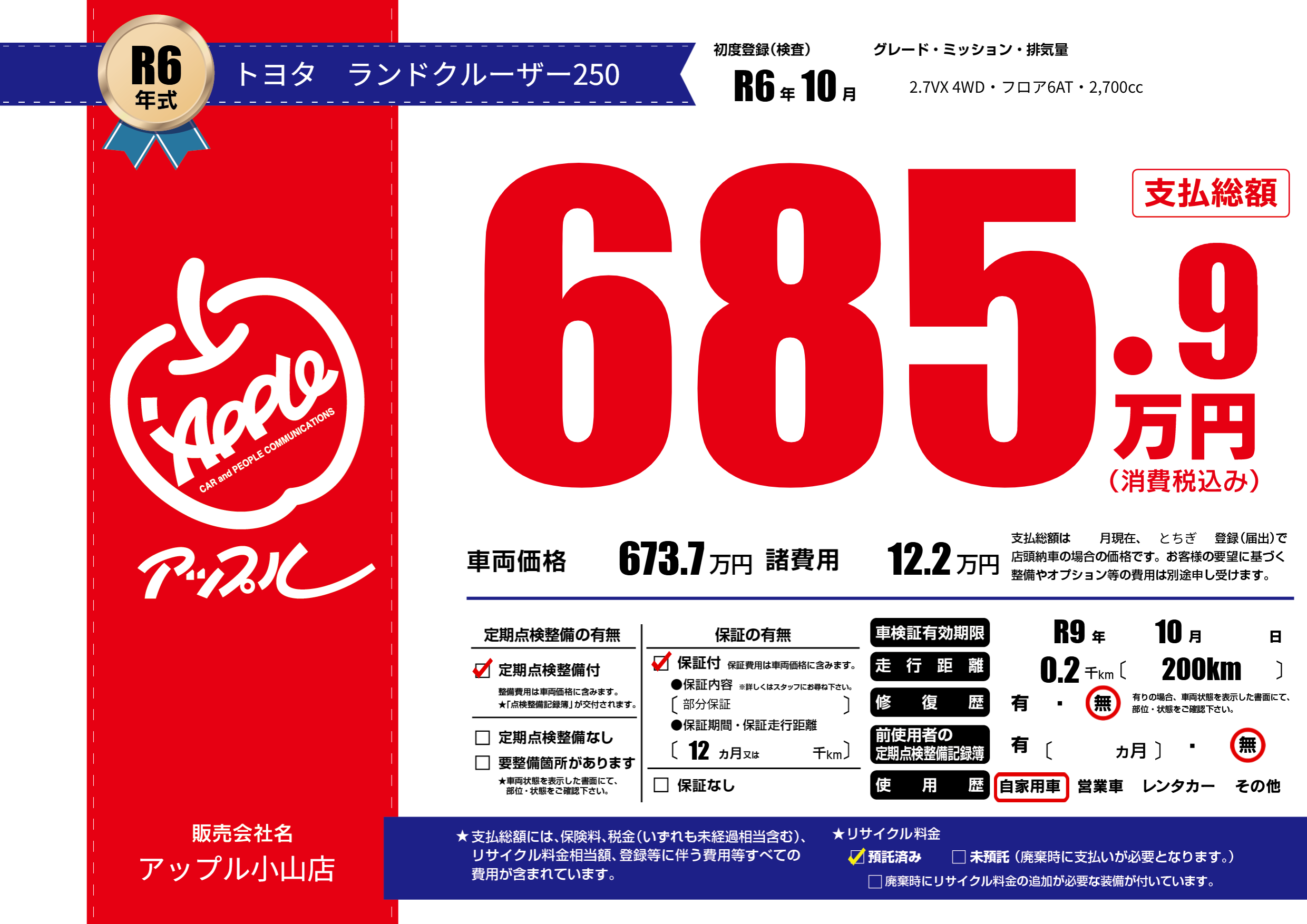 | 車名 | トヨタ ランドクルーザー250 | グレード ミッション 排気量 |