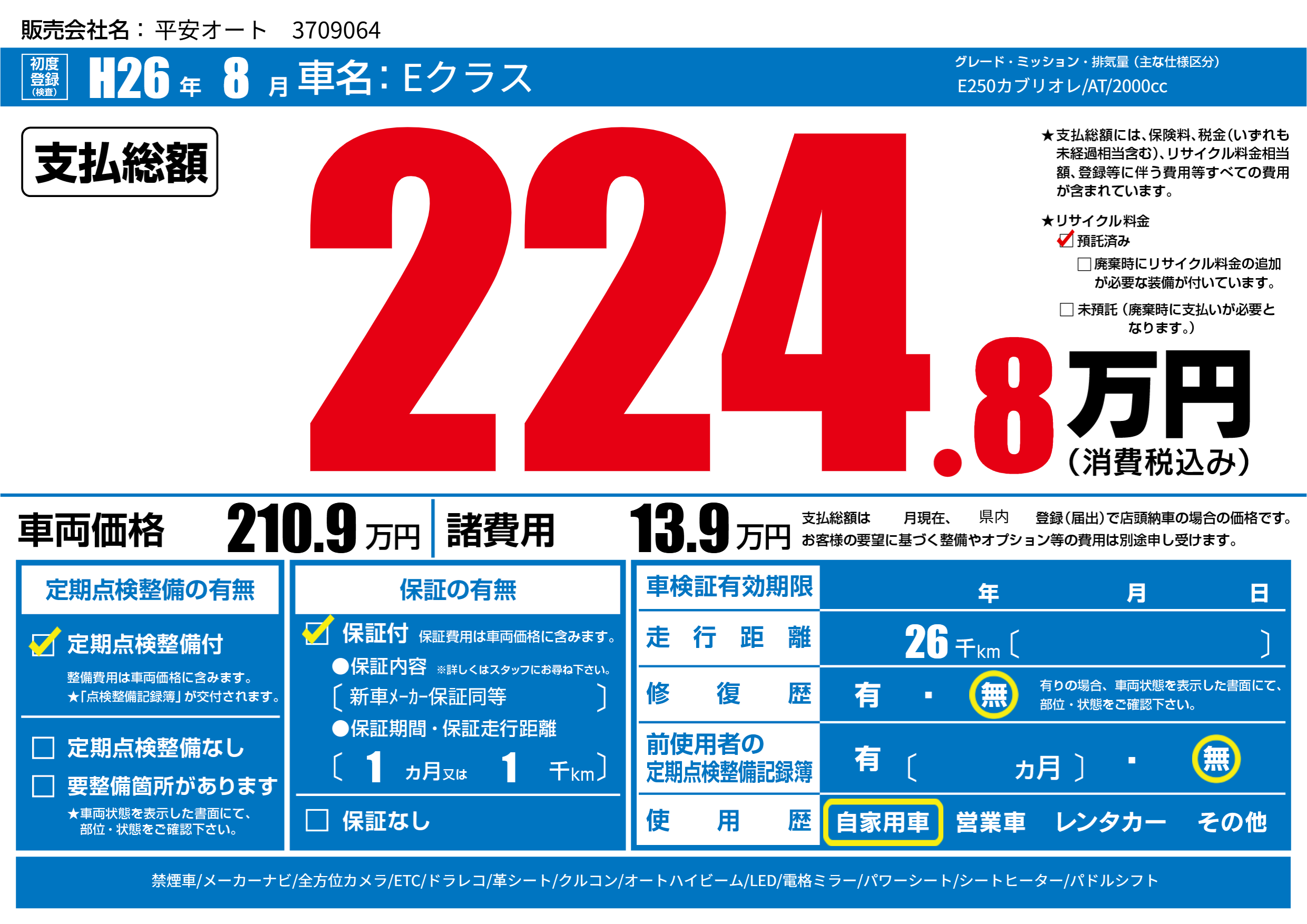 | 初年度登録 | H26年8月 | ||