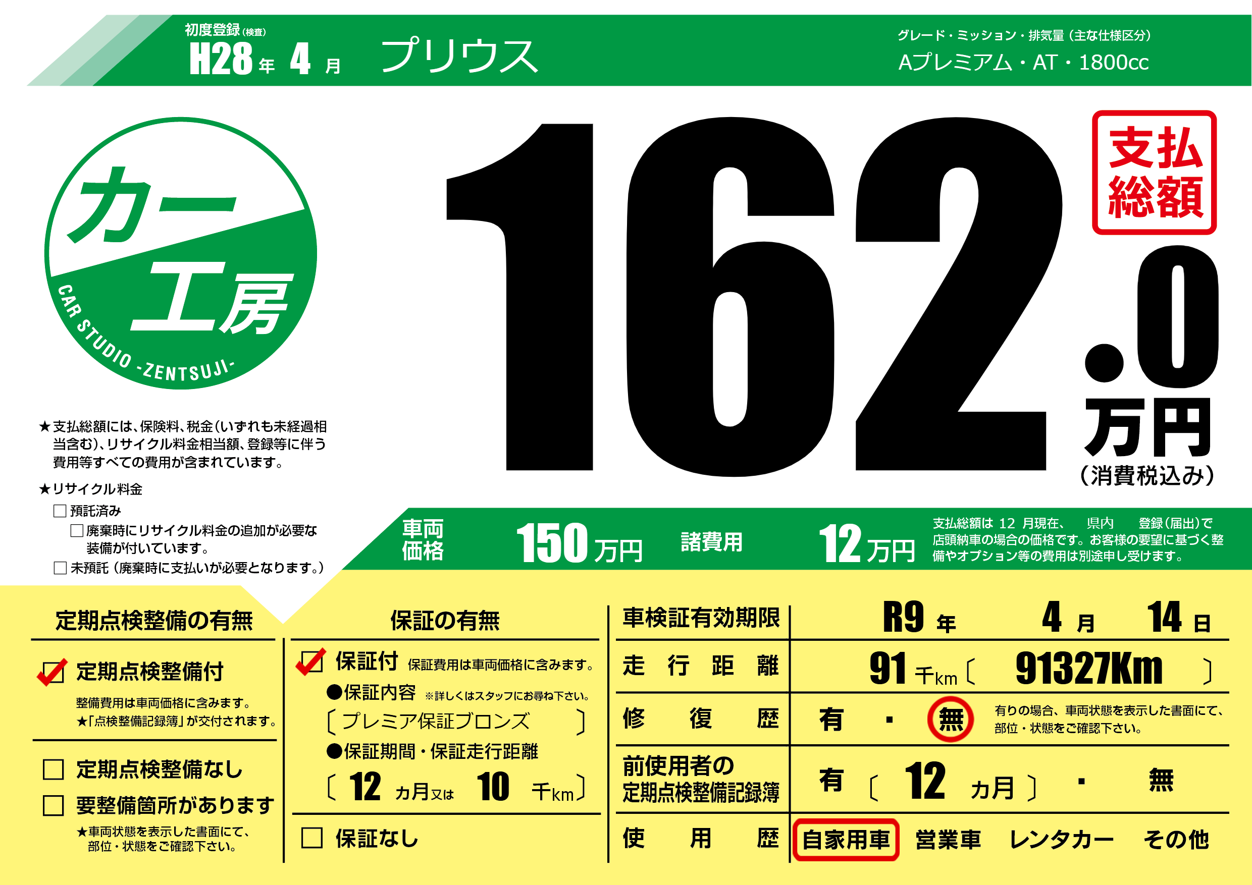 | 車名 | プリウス | グレード ミッション 排気量 |