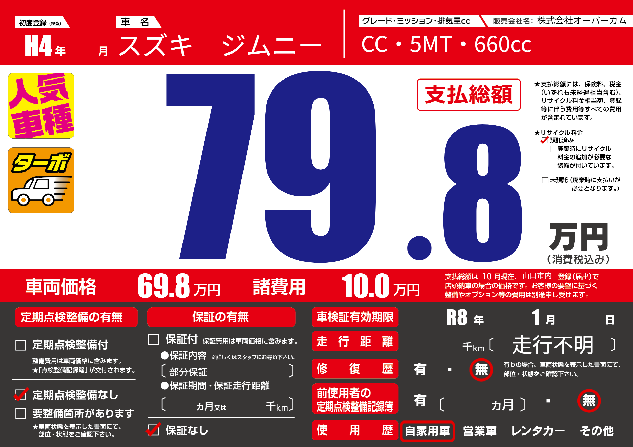 なし | 車検制限 | R8年1月---月 |