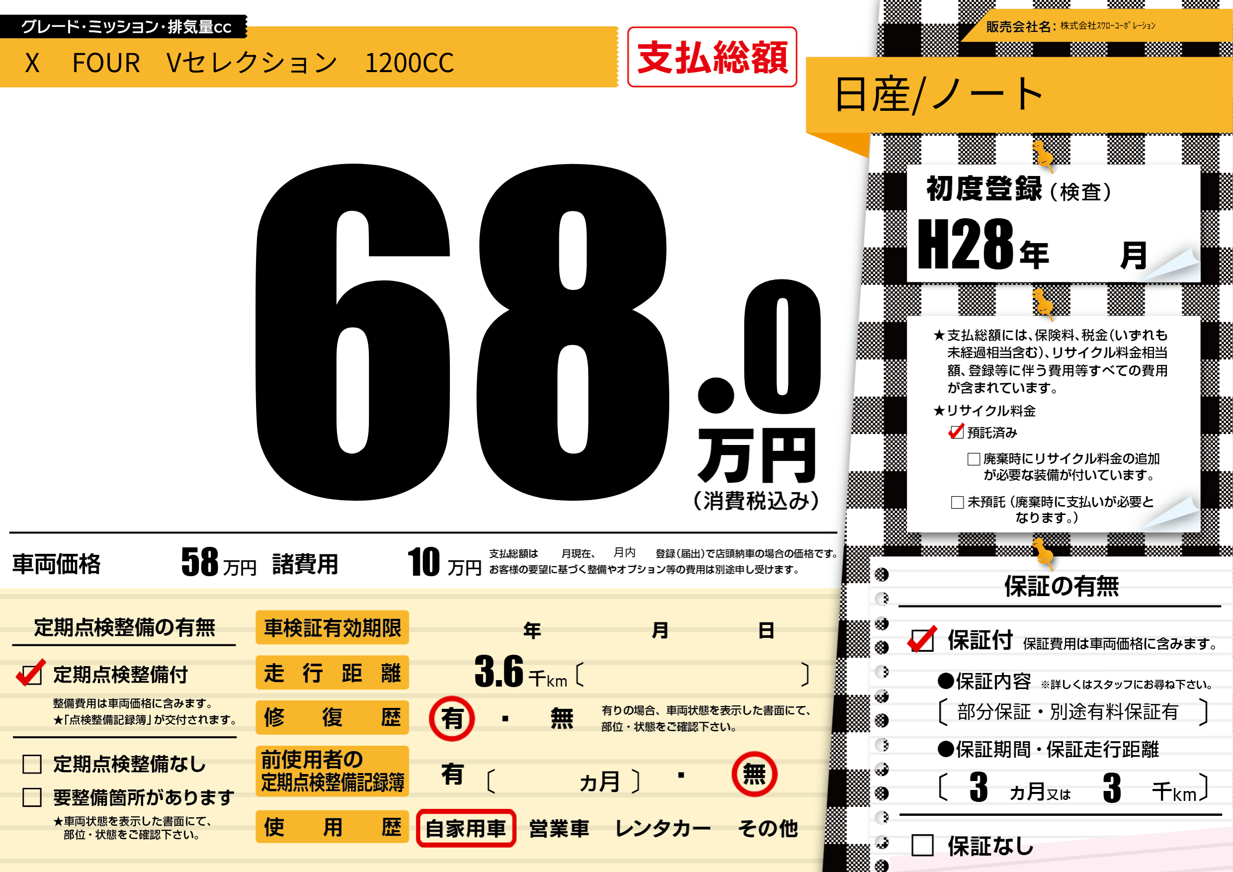 | 車名 | 日産/ノート | グレード ミッション 排気量 |