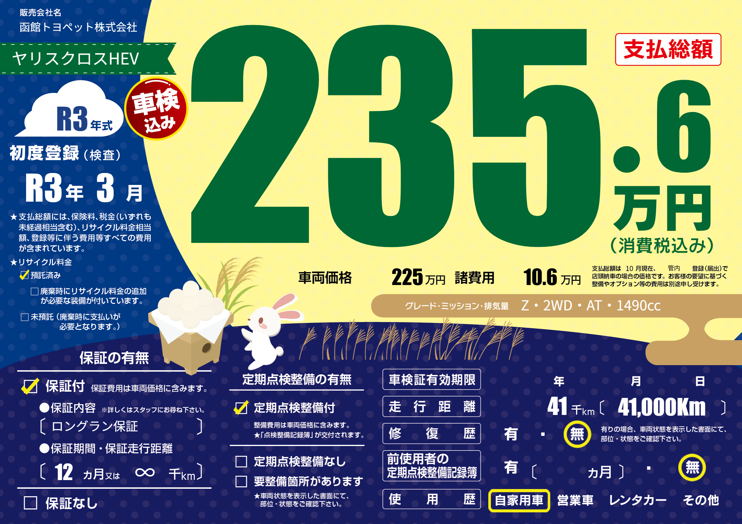 | 走行キロ | 4.1万km | 初年度登録 | R3年3月 |
