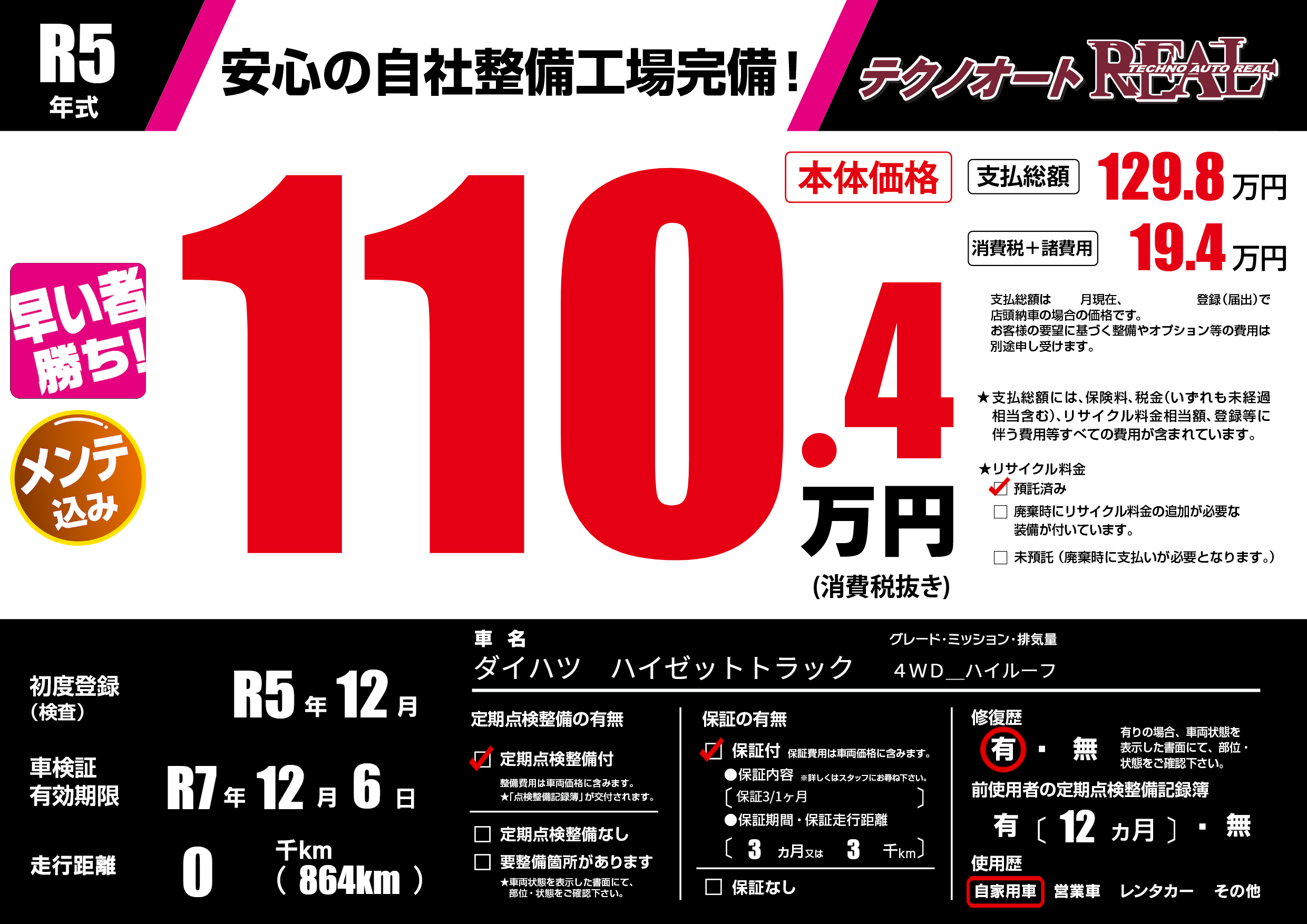 | 走行キロ | - | 初年度登録 | R5年12月 |