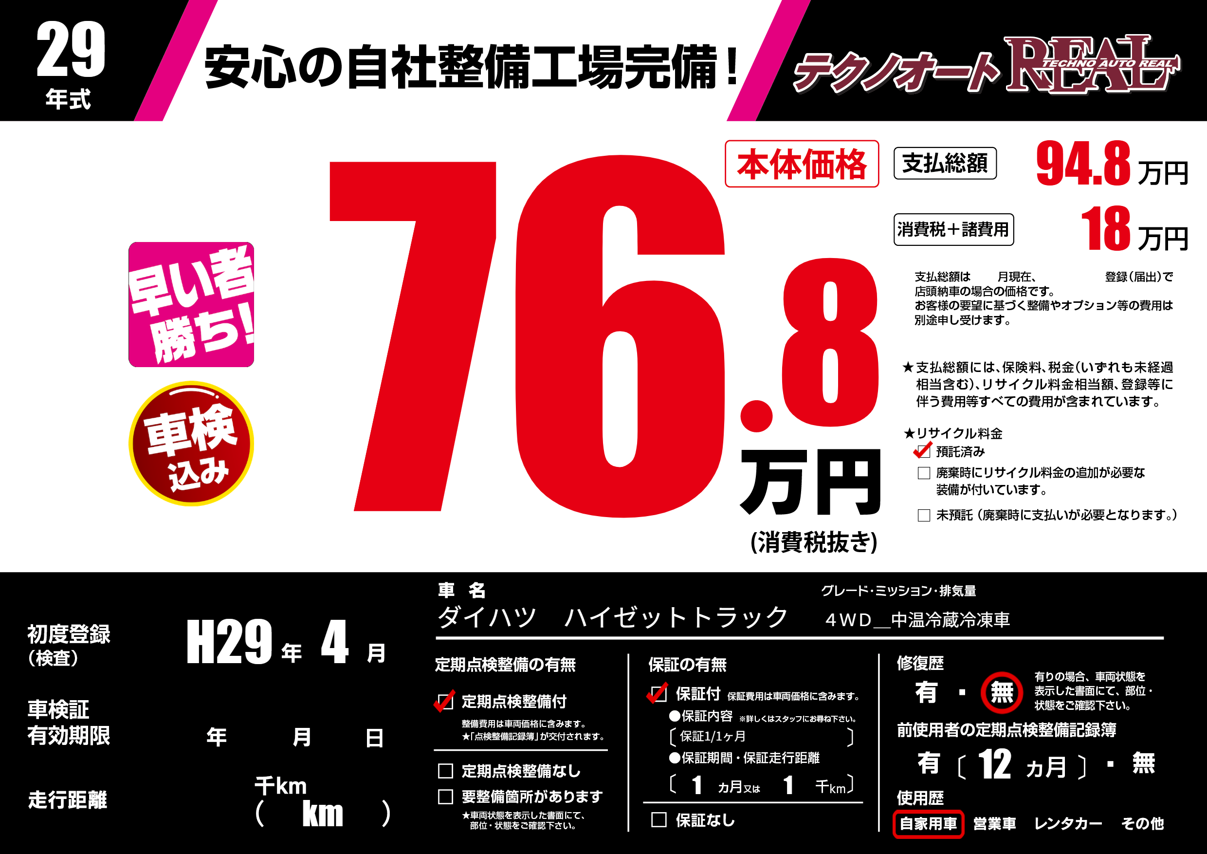 | 走行キロ | - | 初年度登録 | H29年4月 |