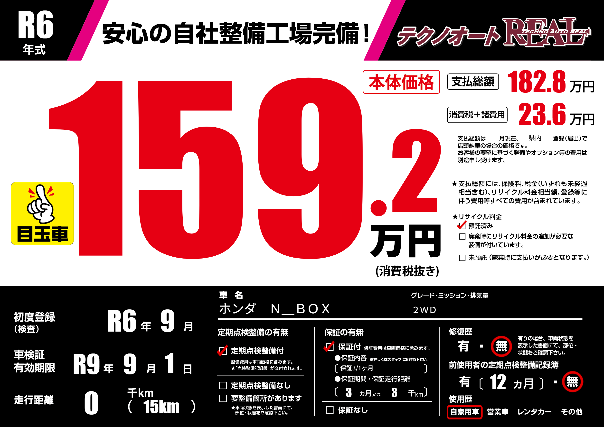 | 走行キロ | - | 初年度登録 | R6年9月 |
