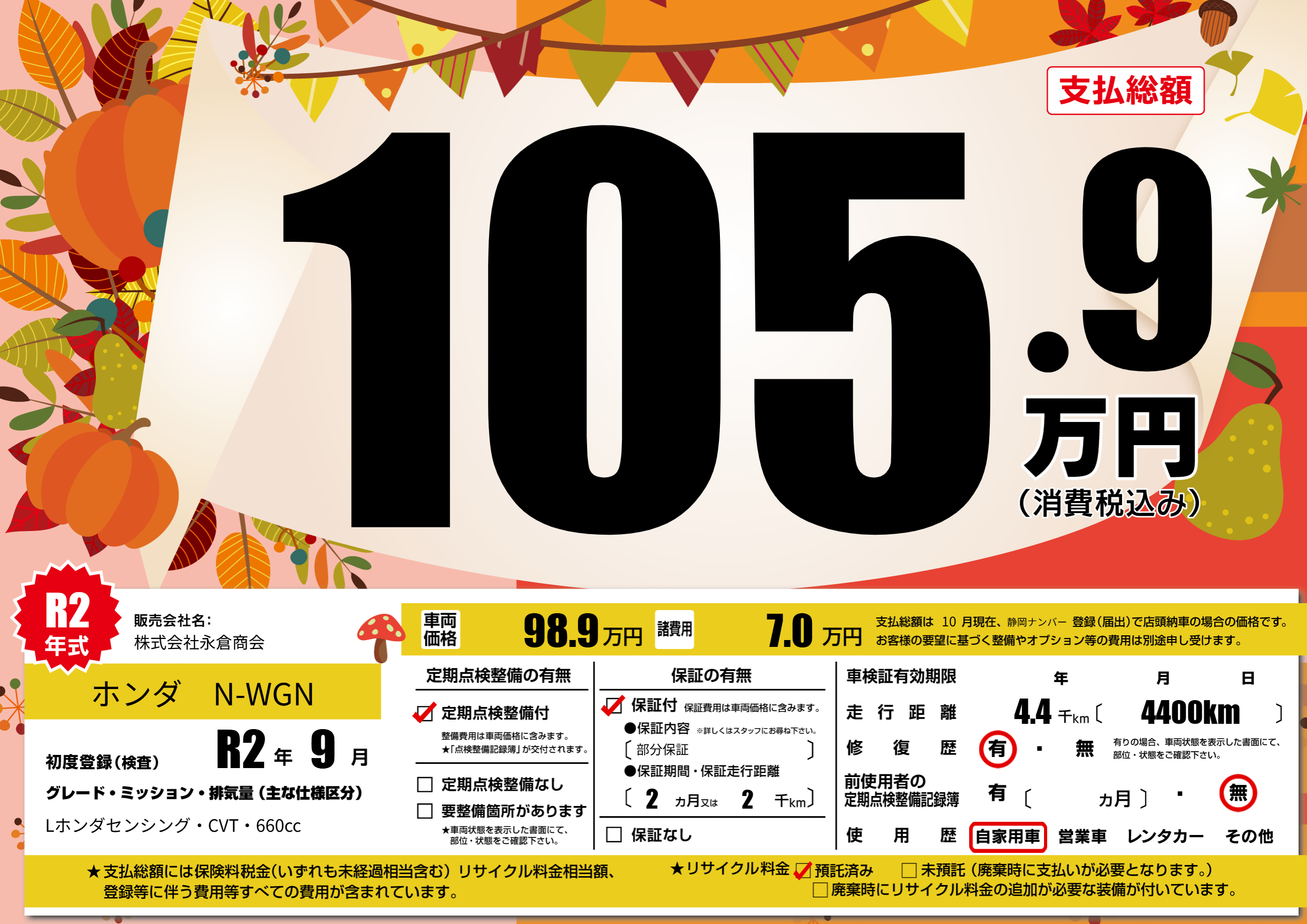| 初年度登録 | R2年9月 | ||
