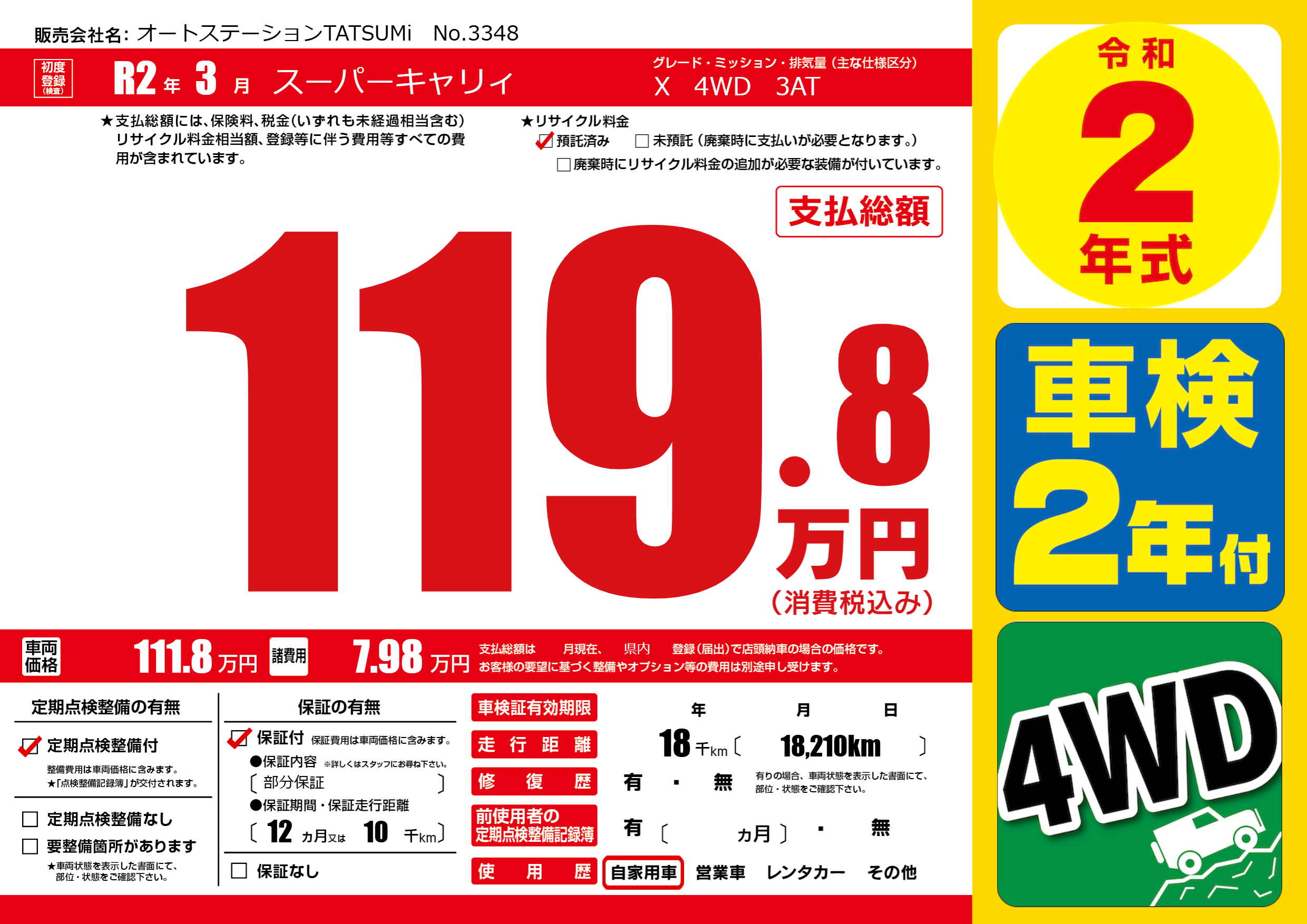 | 走行キロ | 1.8万km | 初年度登録 | R2年3月 |