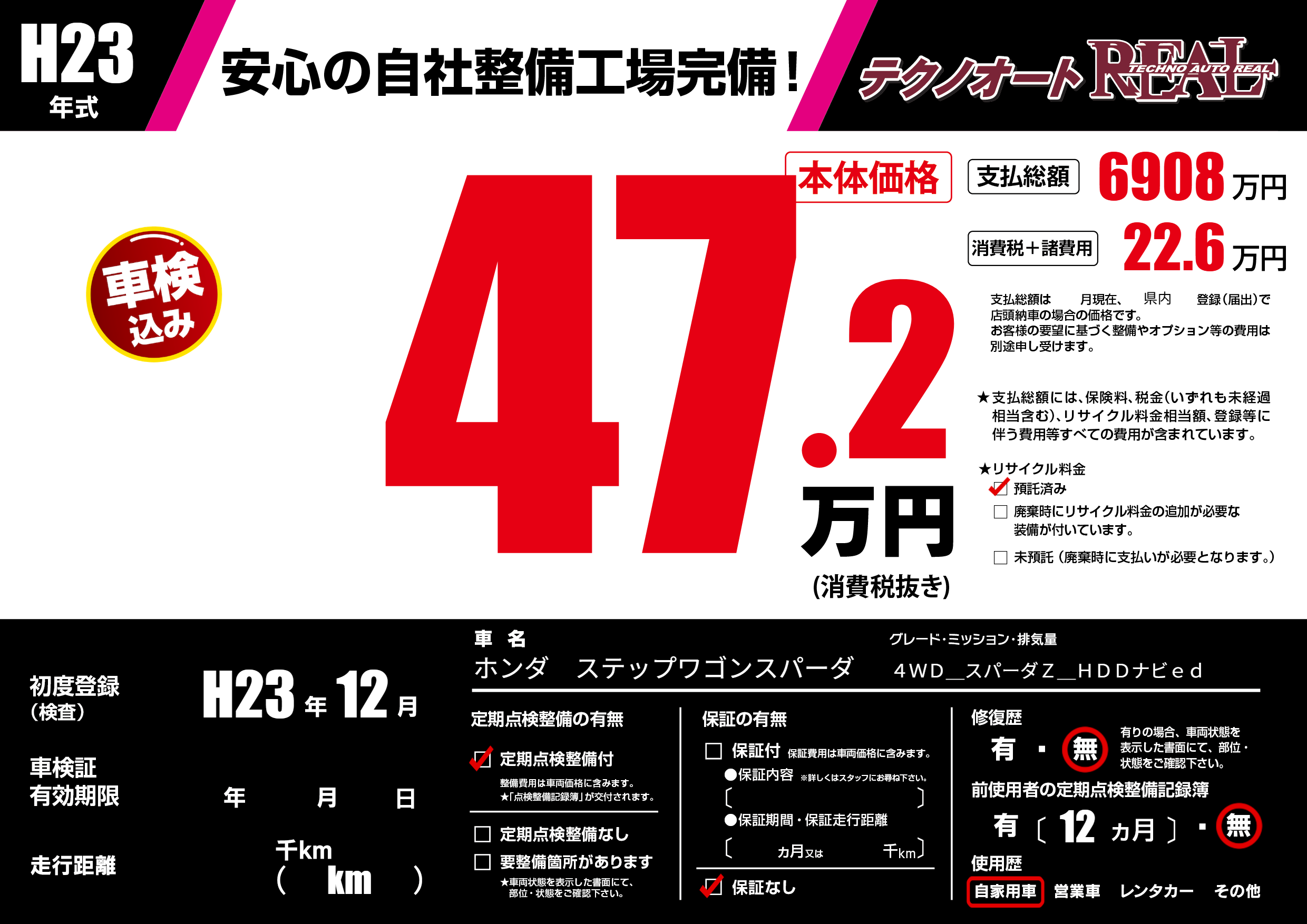 | 走行キロ | - | 初年度登録 | H23年12月 |