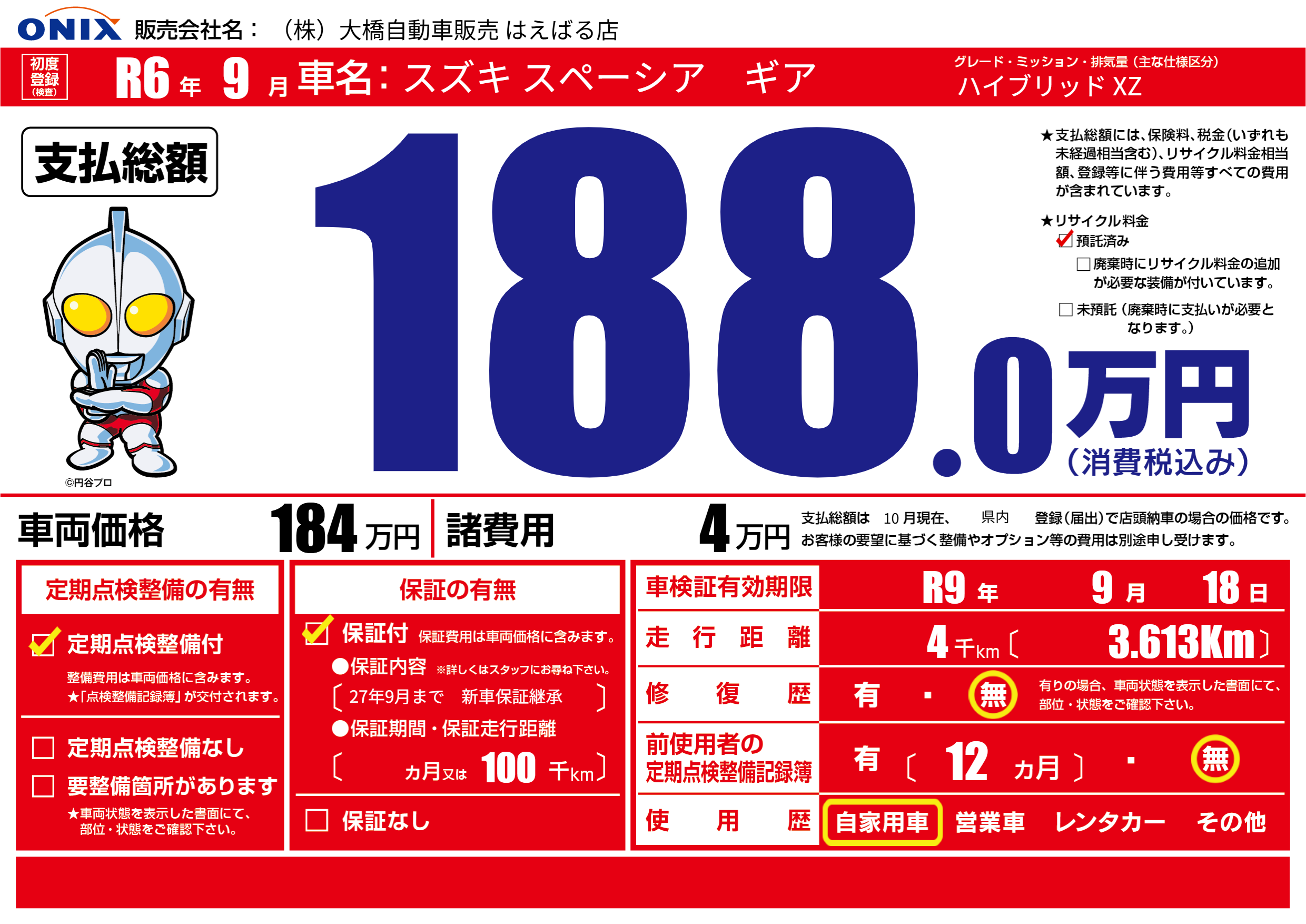 なし | 車検制限 | R9年9月18月 |