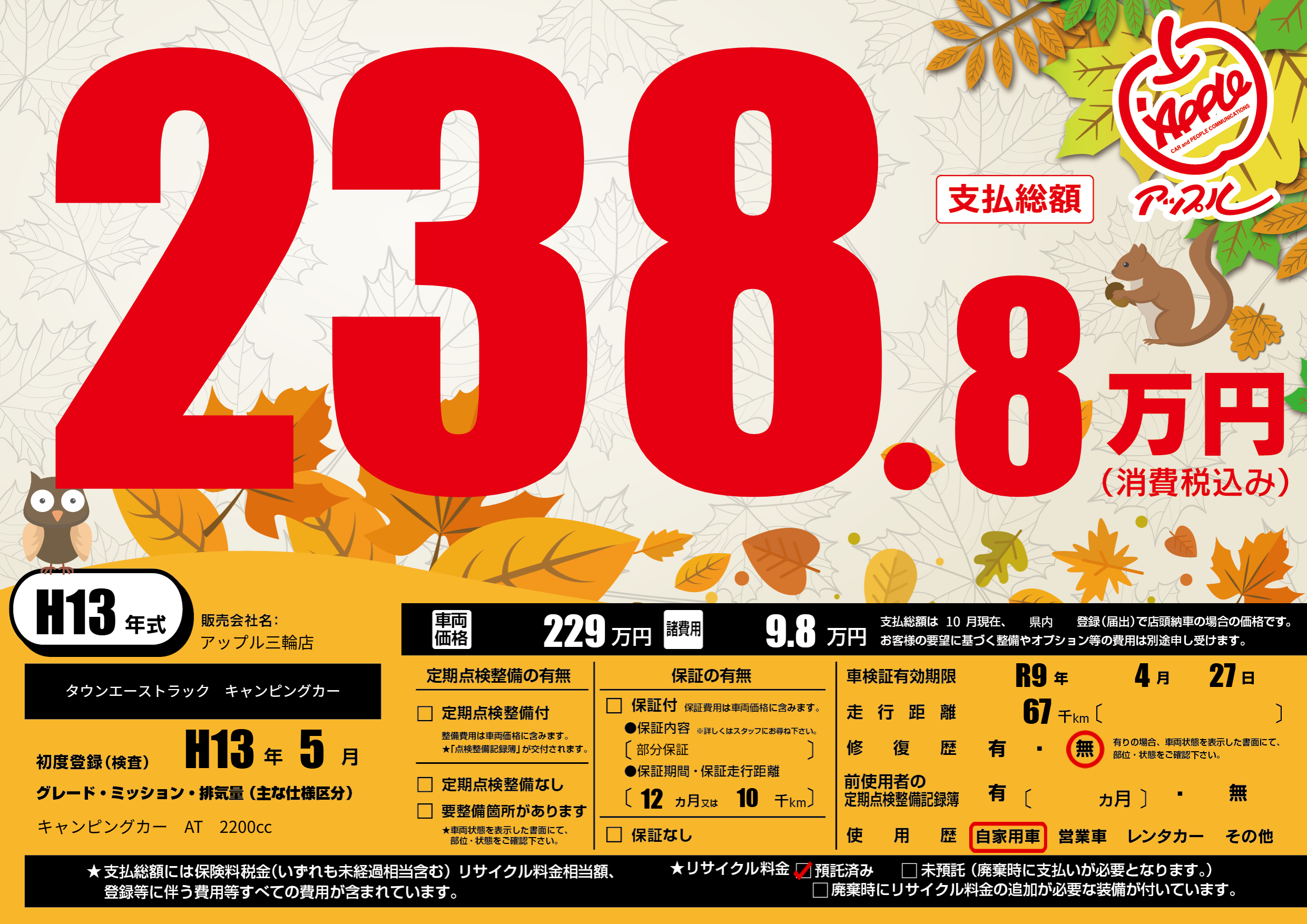 | 車検制限 | R9年 4月 27日 | ||