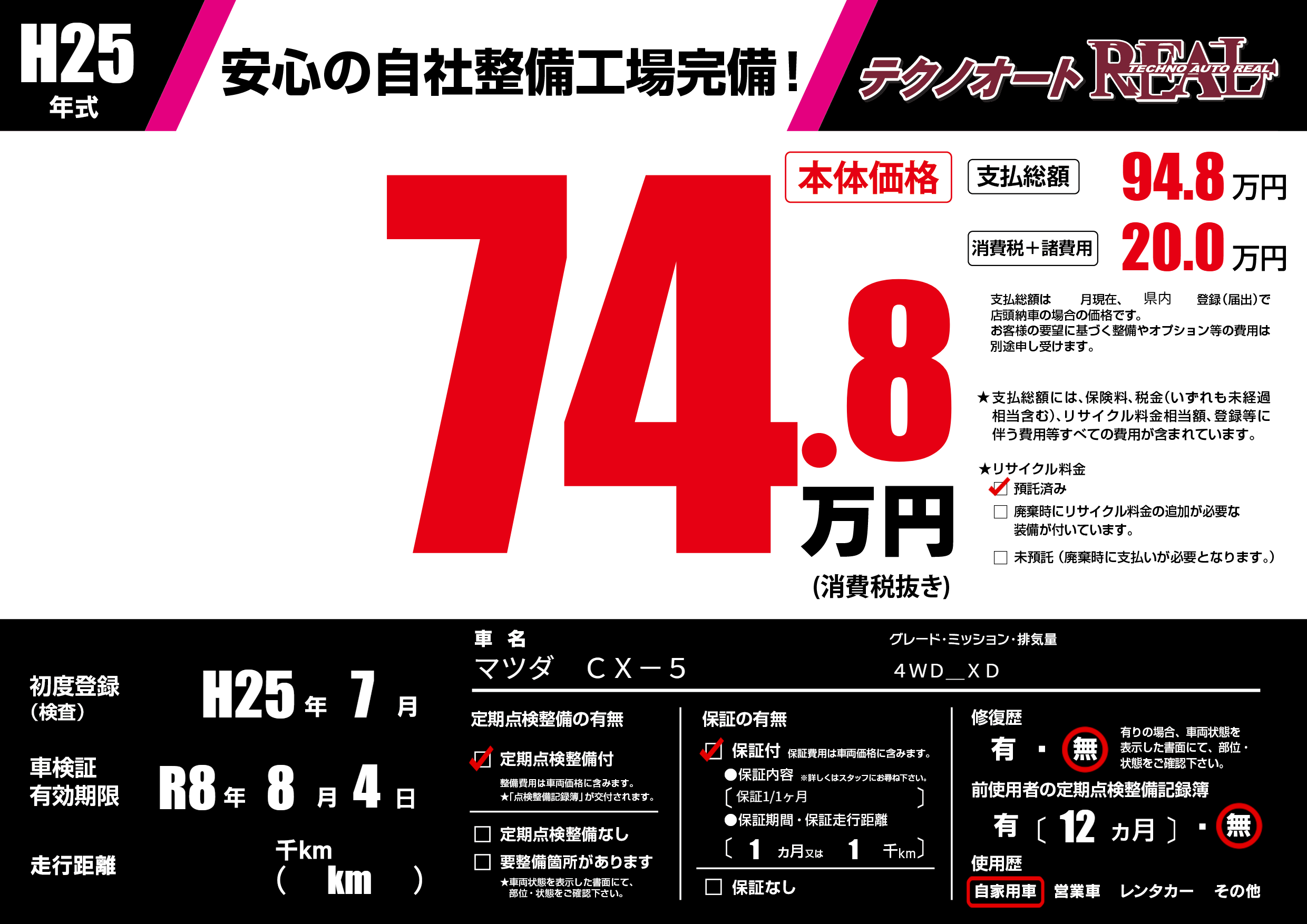 | 車検制限 | R8年 8月 4日 | ||