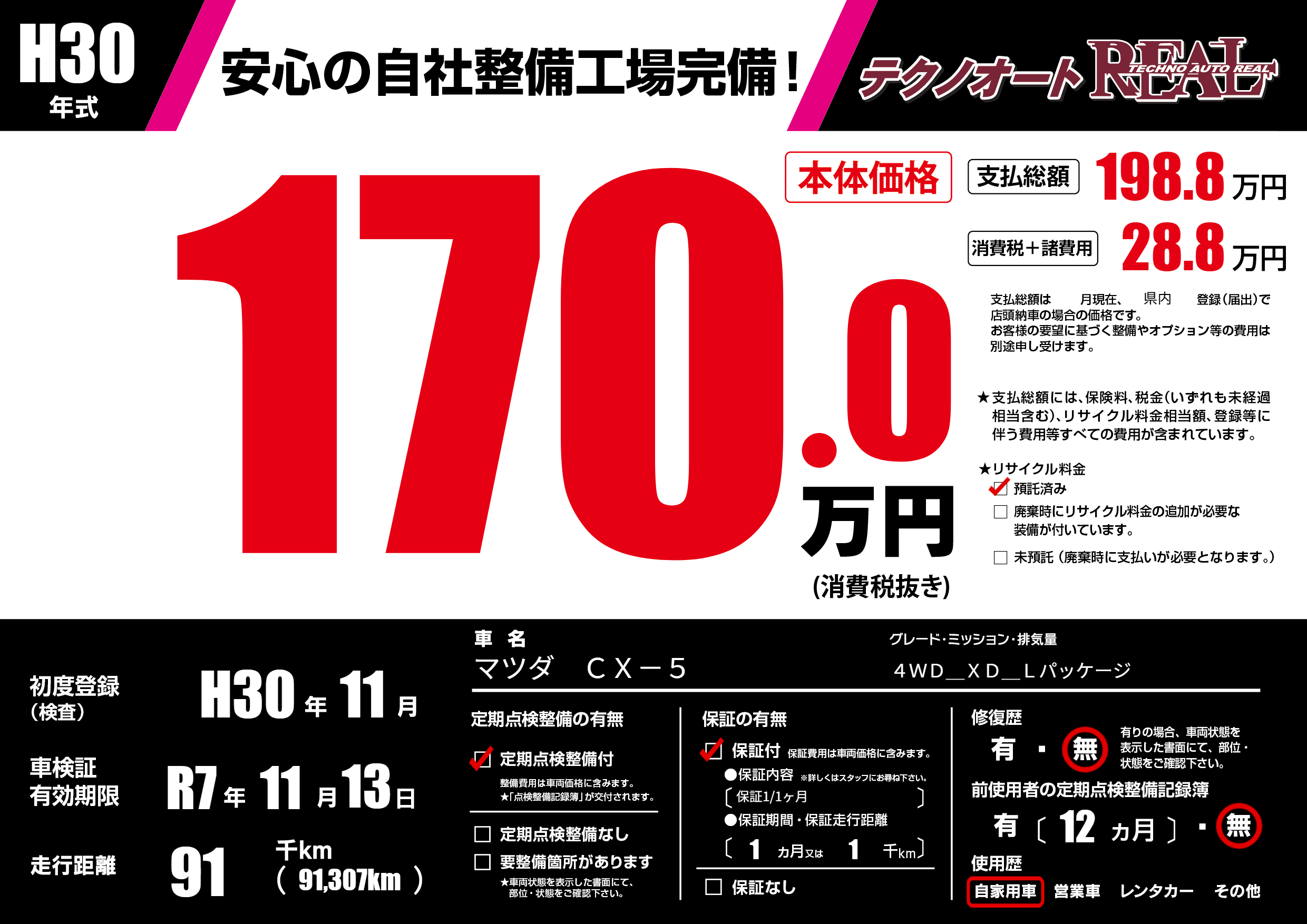 | 走行キロ | 9.1万km | 初年度登録 | H30年11月 |