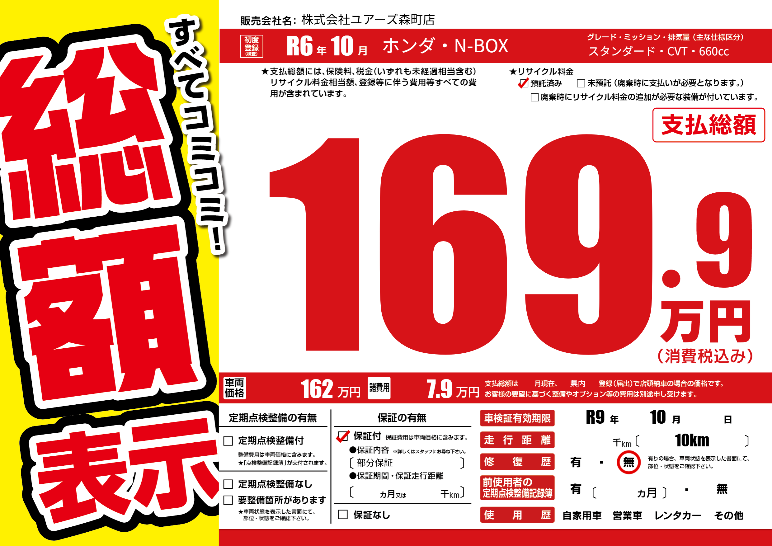 なし | 車検制限 | R9年10月---月 |
