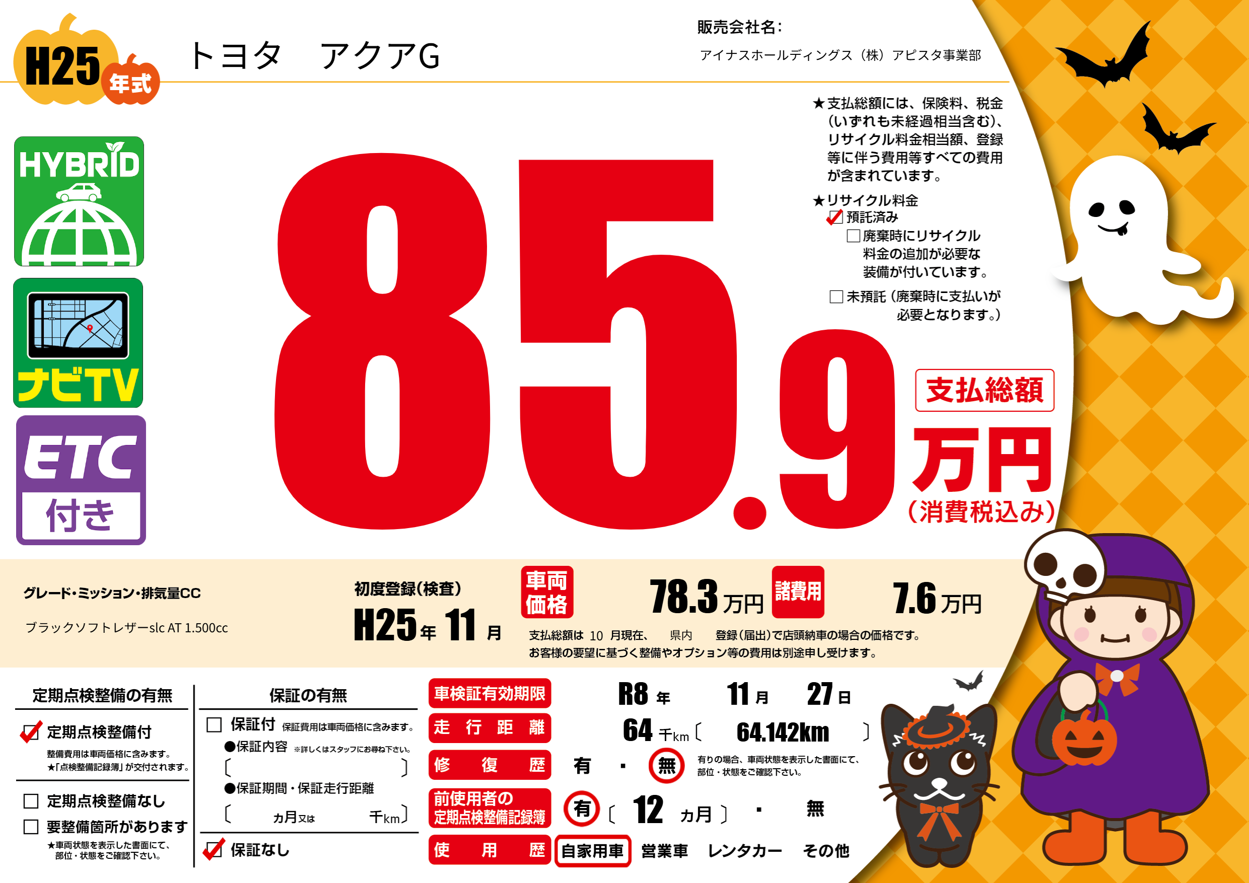 | 走行キロ | 6.4万km | 初年度登録 | H25年11月 |