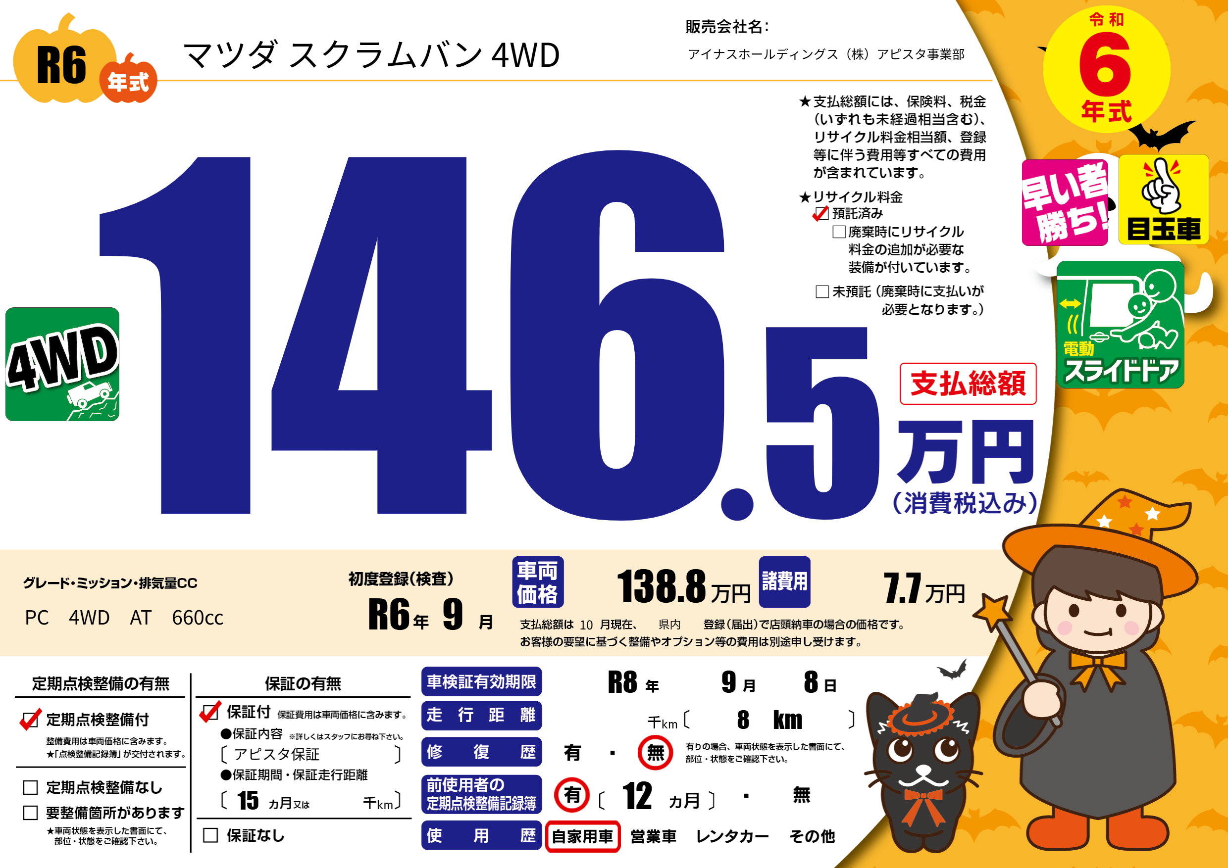 | 走行キロ | - | 初年度登録 | R6年9月 |