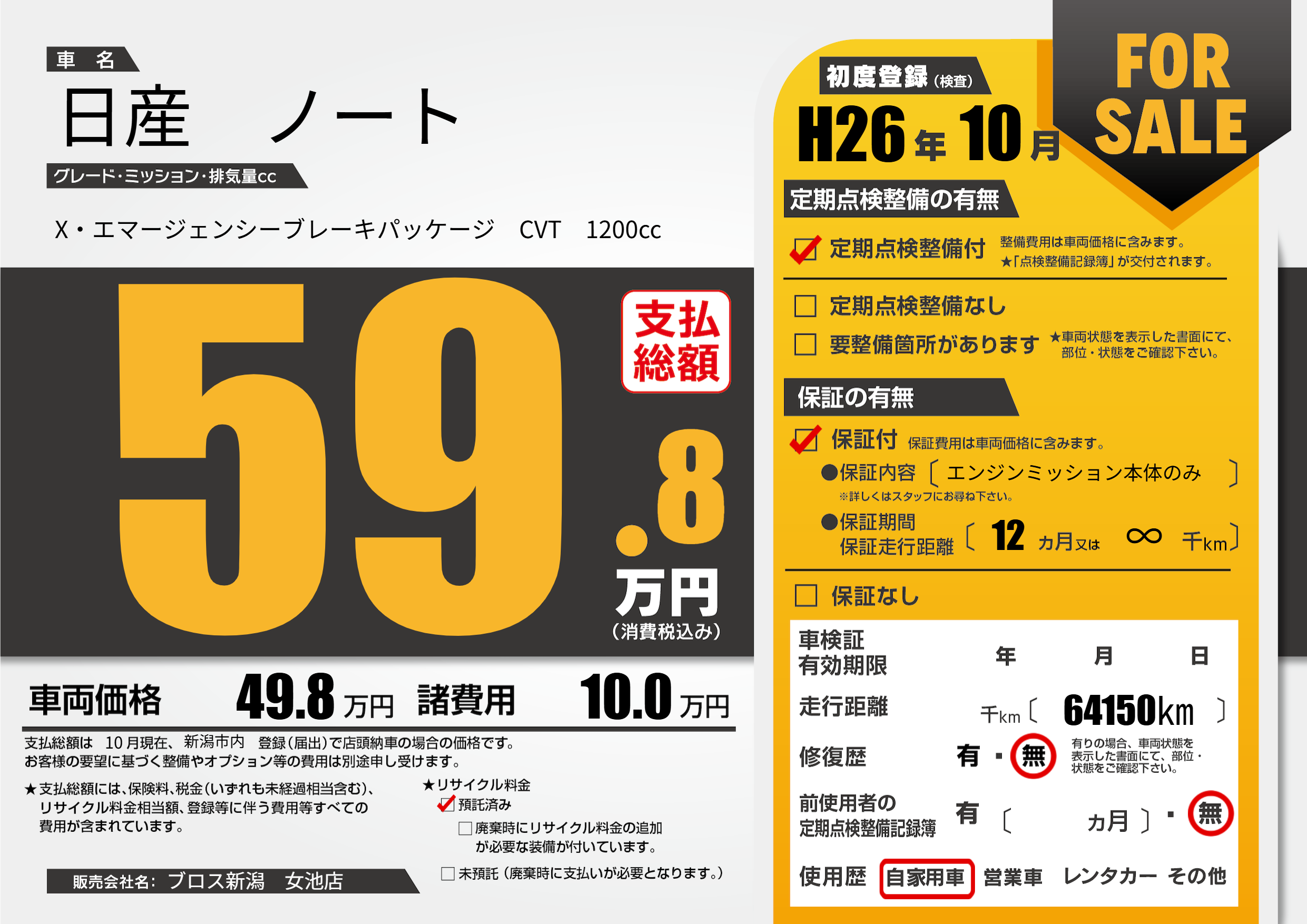 | 車名 | 日産 ノート | グレード ミッション 排気量 |