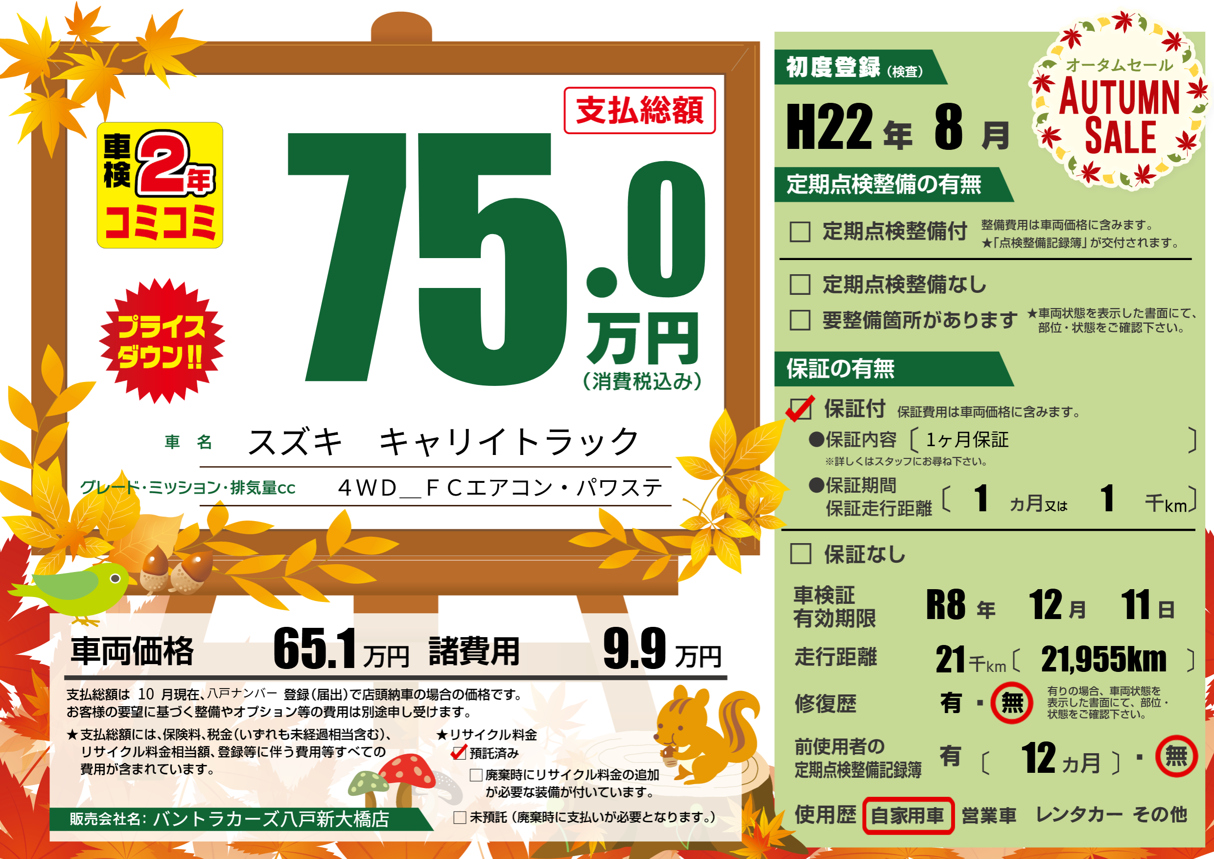| 走行キロ | 2.1万km | 初年度登録 | H22年8月 |