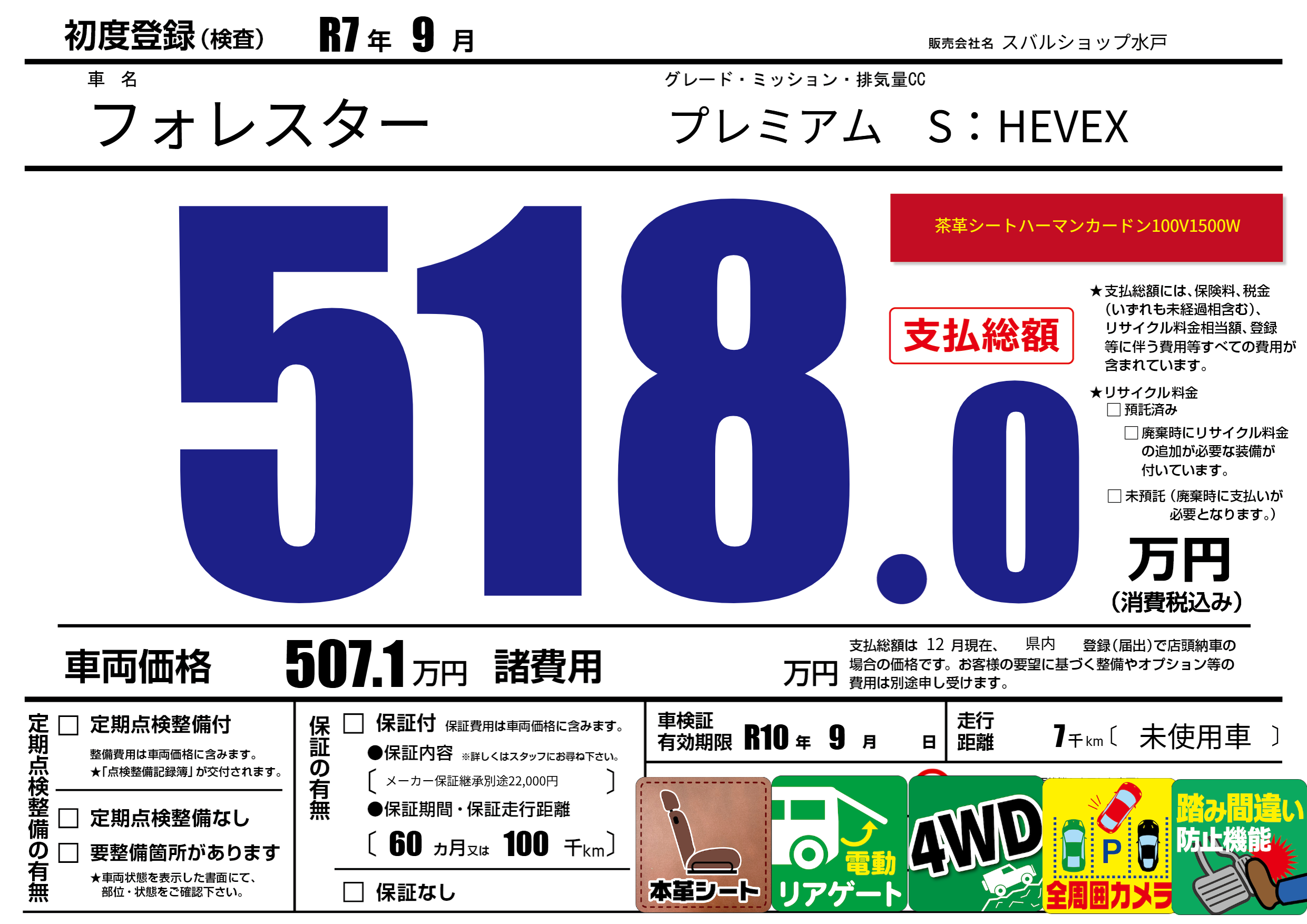 | 車検制限 | R10年 9月 - 日 | ||