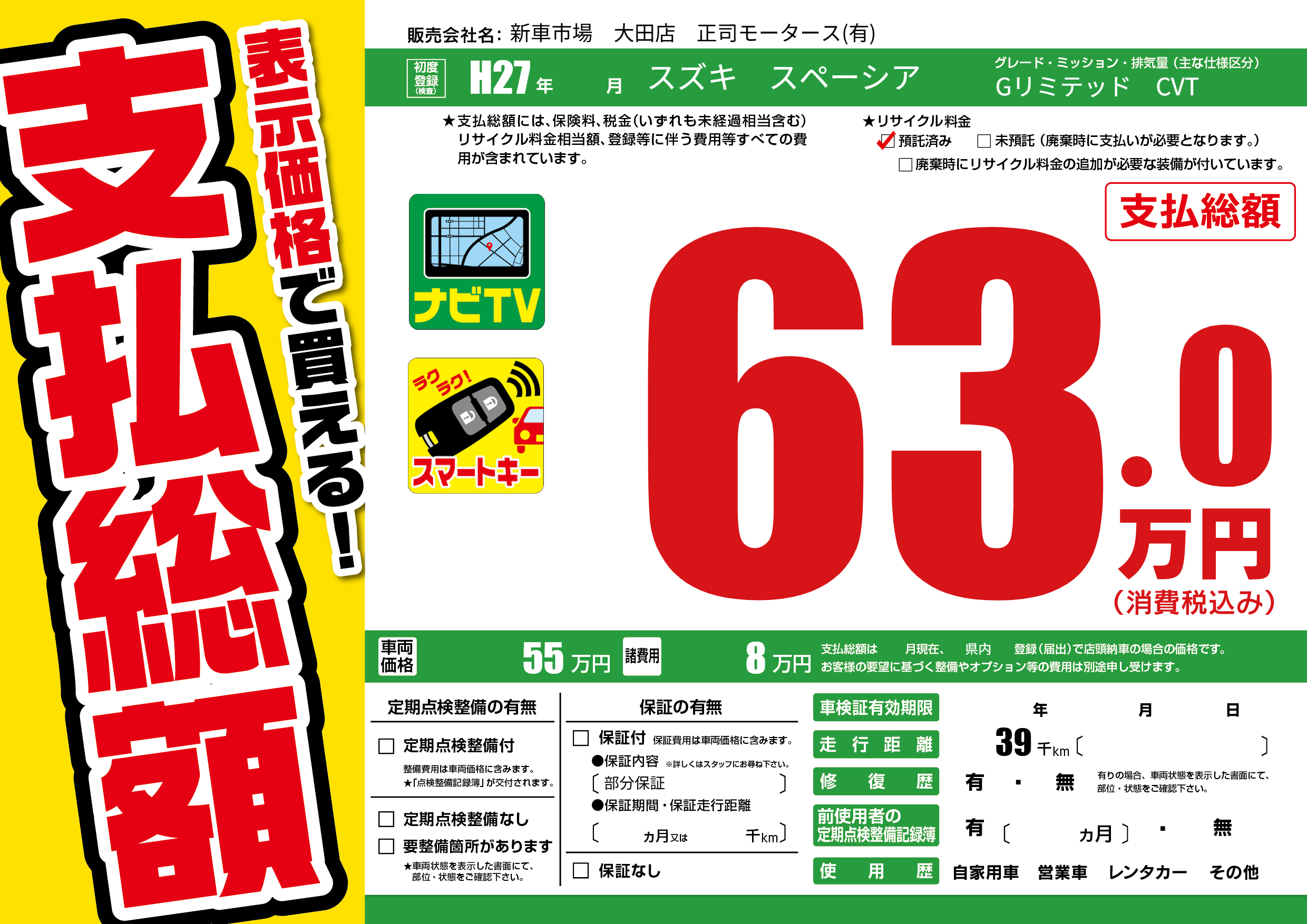 | 走行キロ | 3.9万km | ||