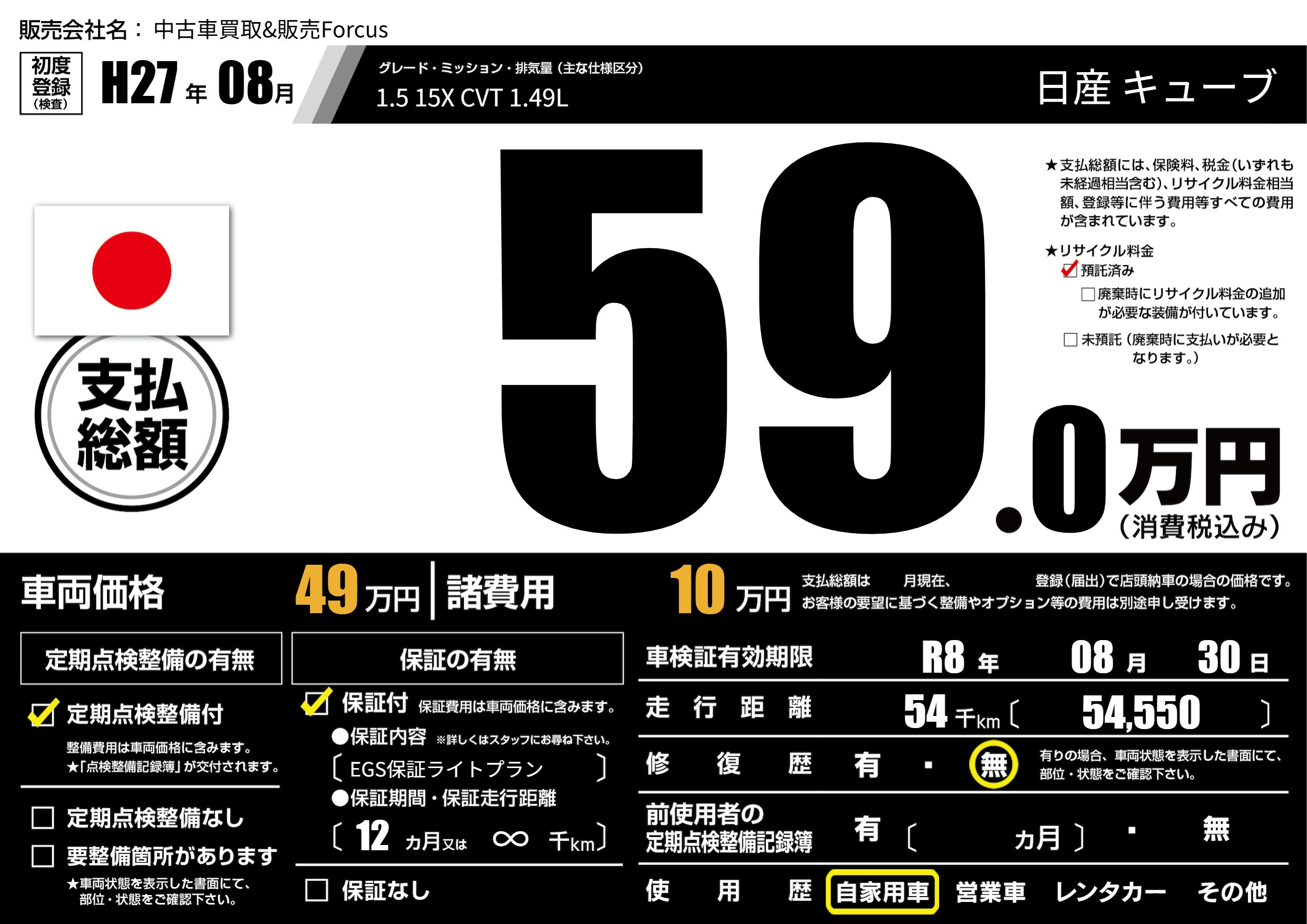 なし | 車検制限 | R8年08月30月 |