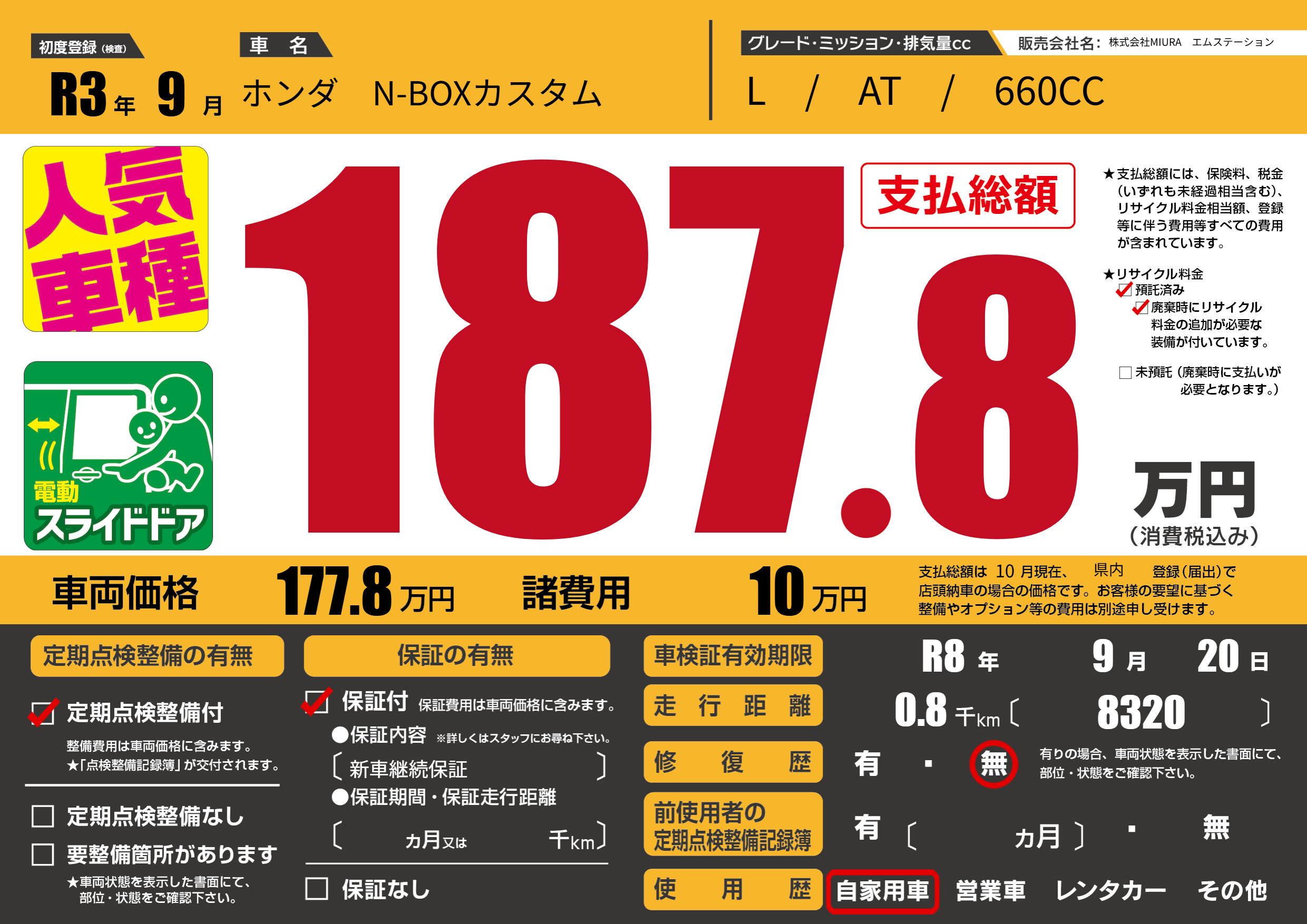 | 走行キロ | - | 初年度登録 | R3年9月 |