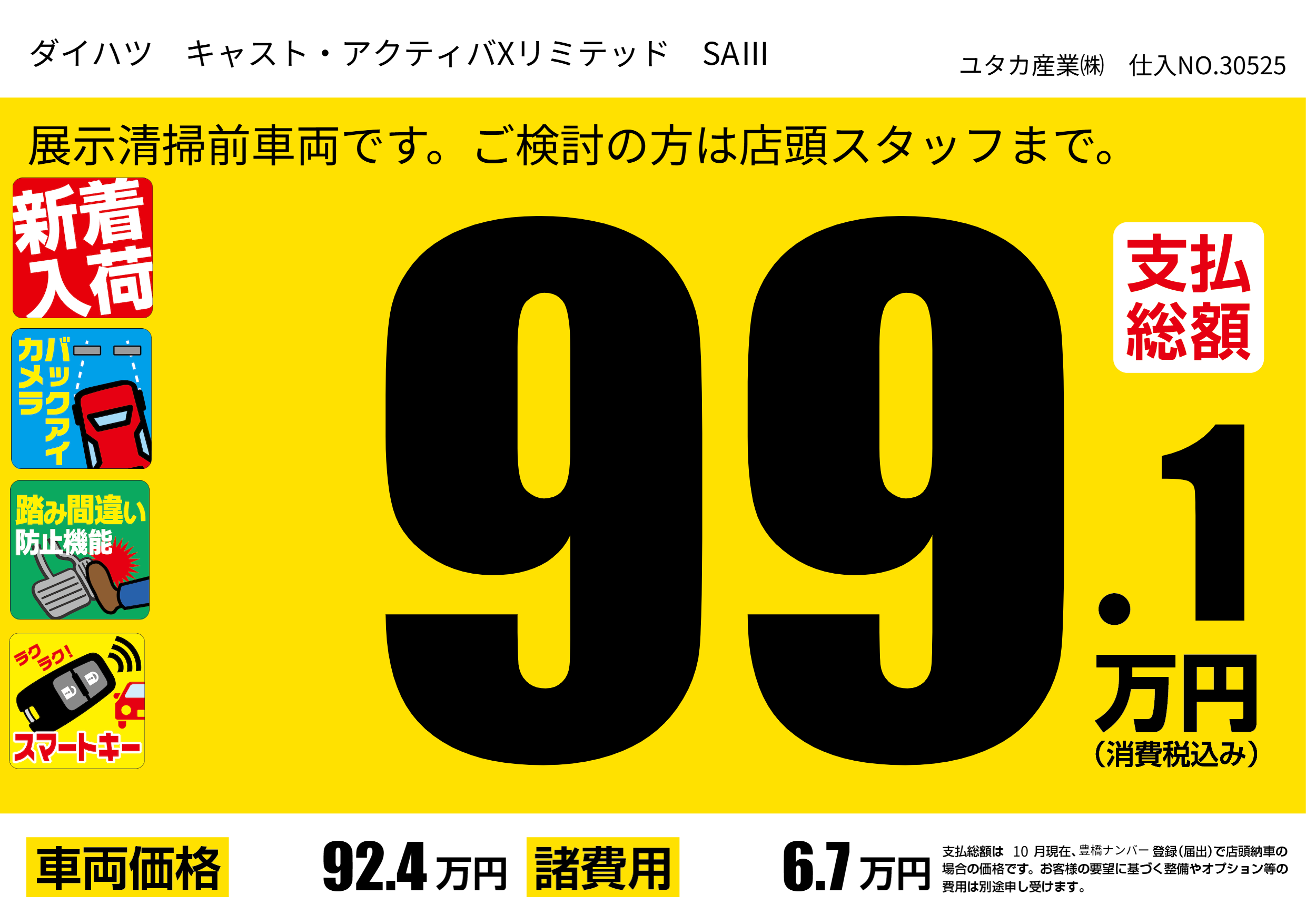 | 車名 | ダイハツ キャスト・アクティバXリミテッド SAⅢ | グレード ミッション 排気量 |