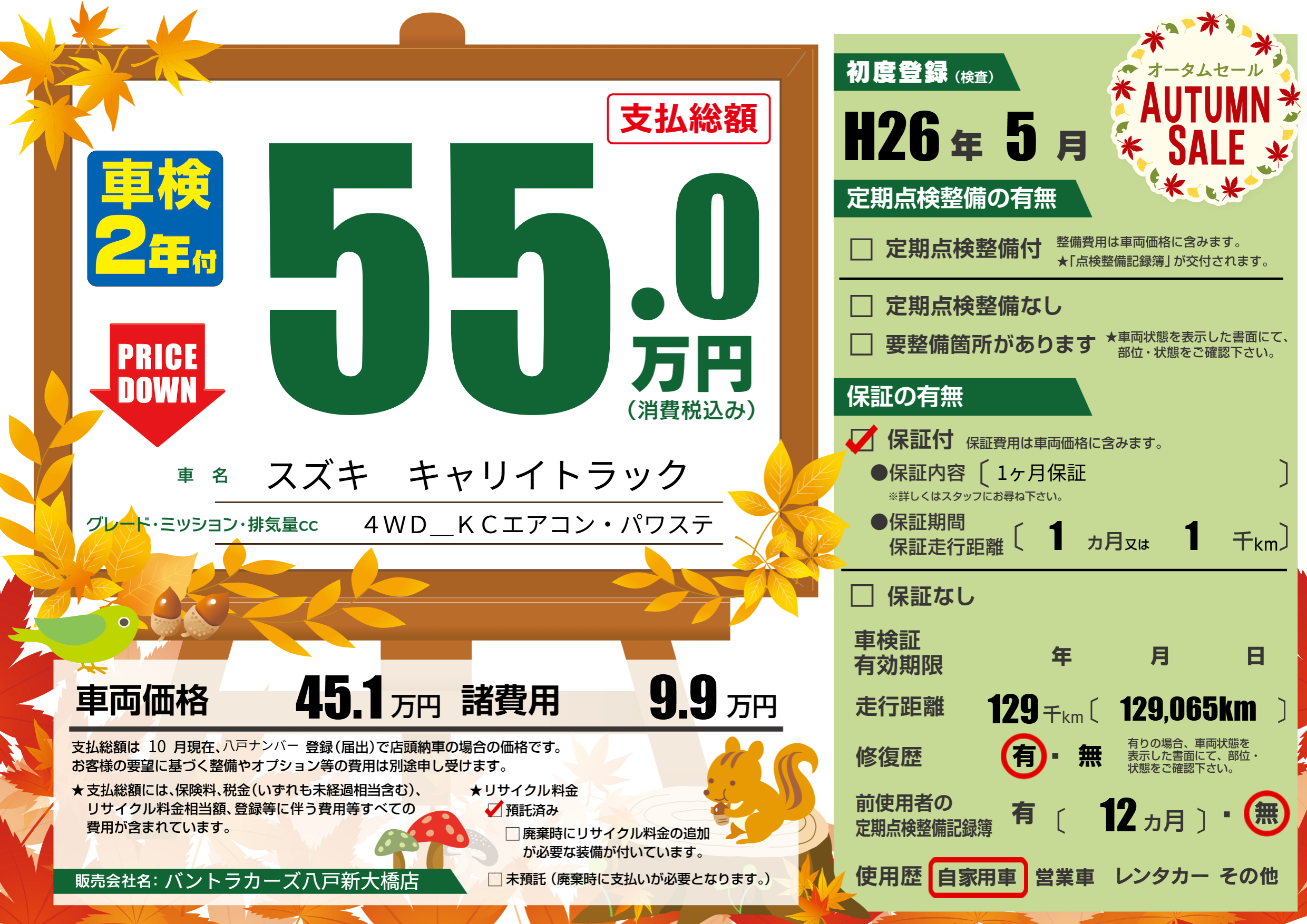 | 走行キロ | 12.9万km | 初年度登録 | H26年5月 |