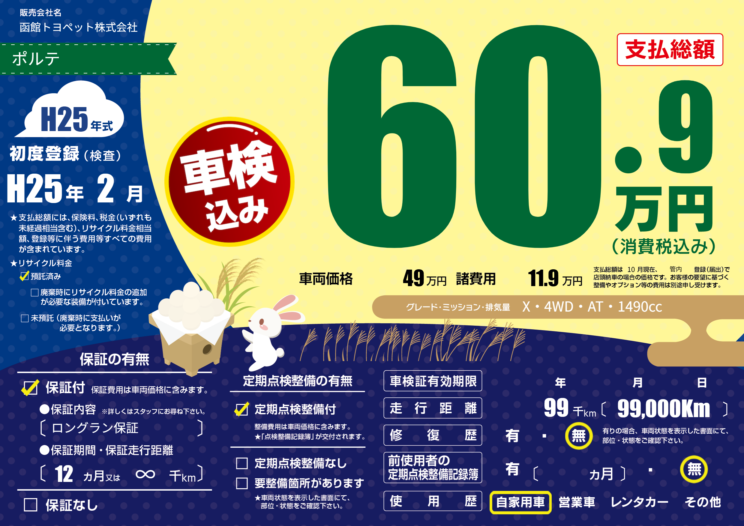| 車名 | ポルテ | グレード ミッション 排気量 |
