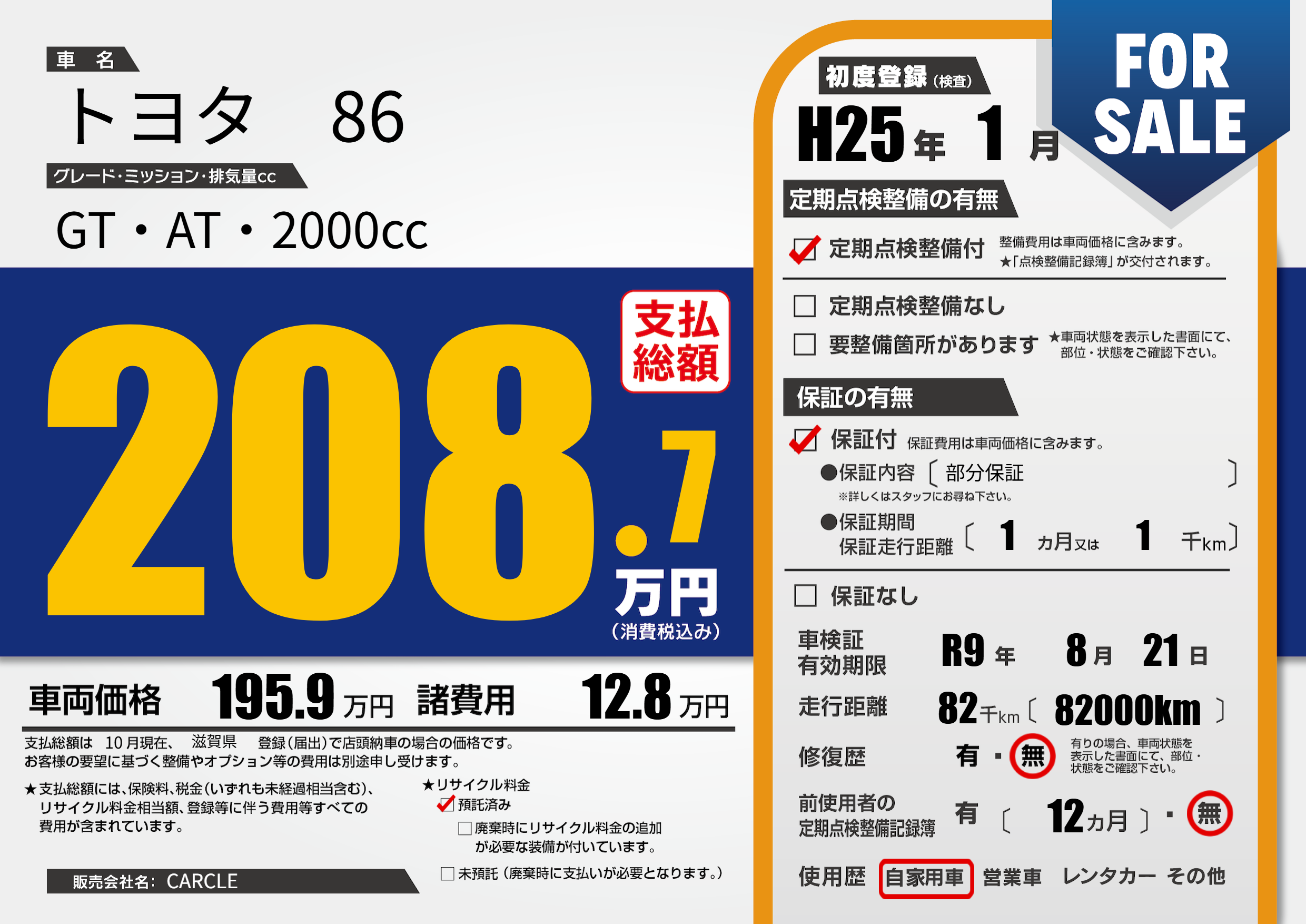 なし | 車検制限 | R9年8月21月 |