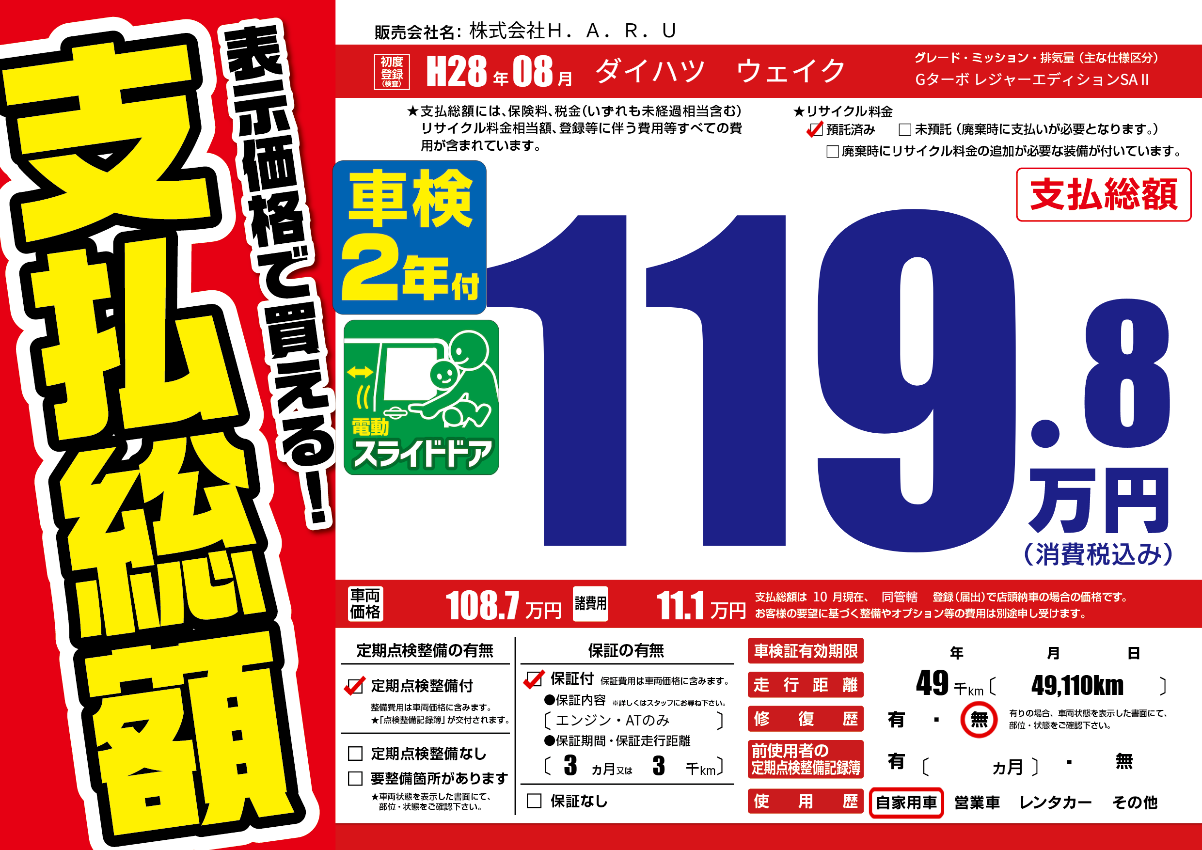 | 走行キロ | 4.9万km | ||