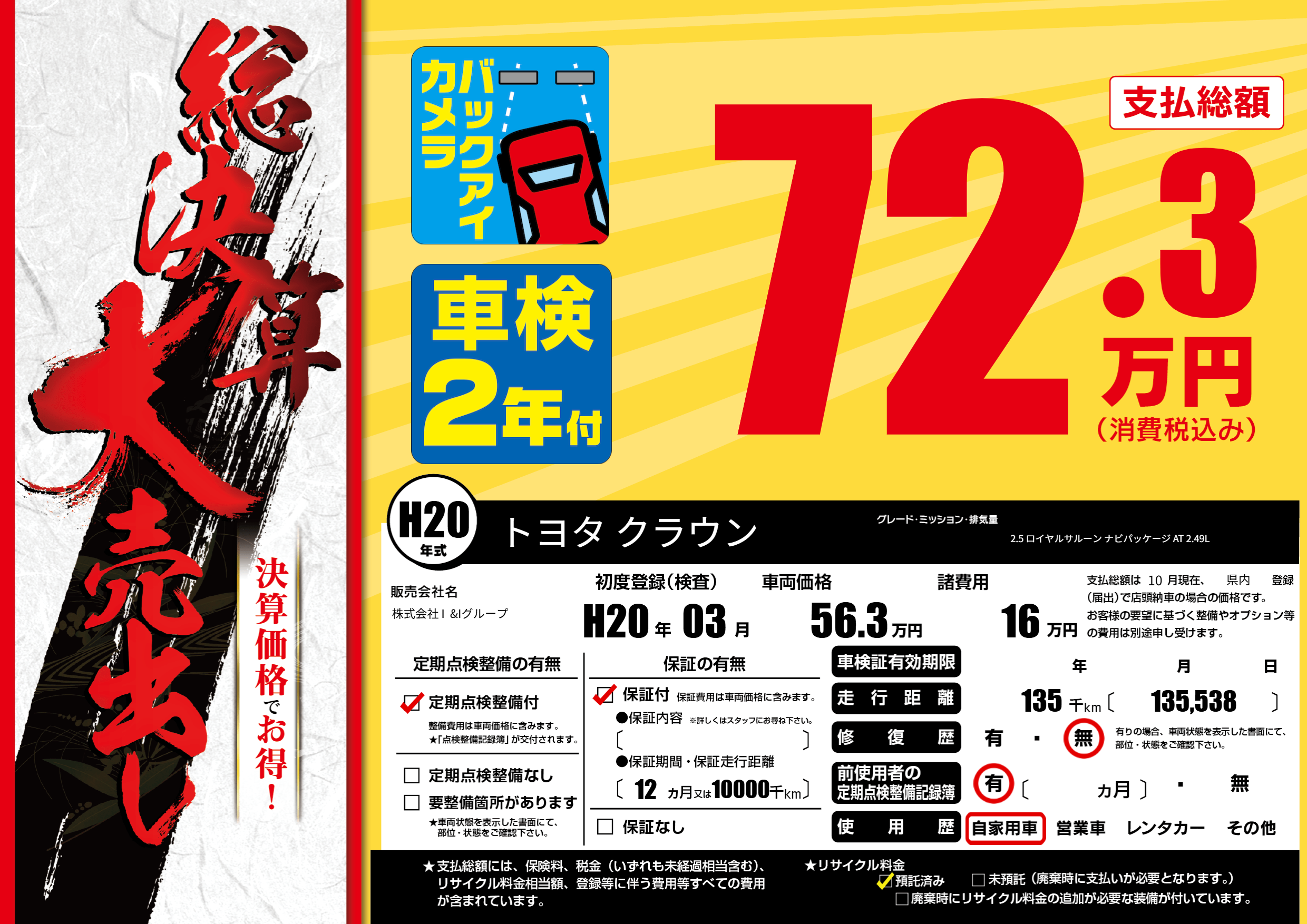 | 走行キロ | 13.5万km | ||