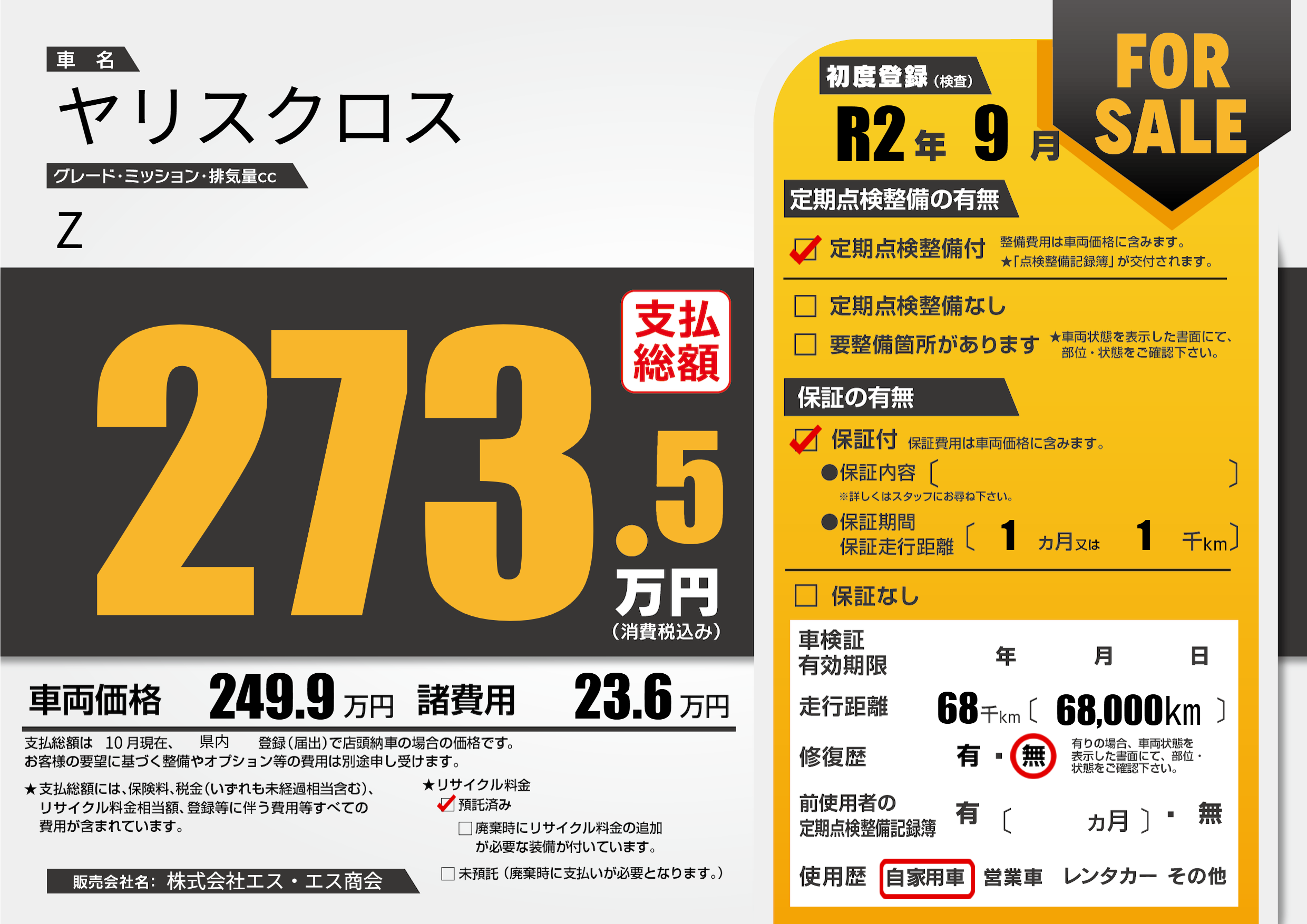 | 走行キロ | 6.8万km | 初年度登録 | R2年9月 |