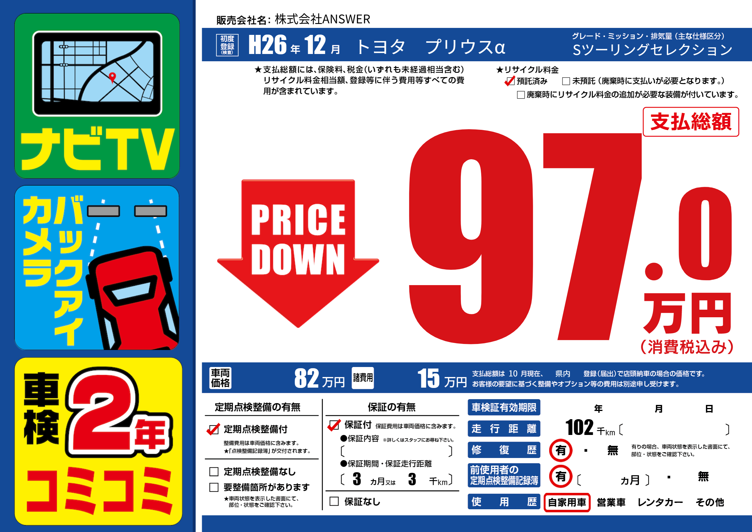 保証付き 保証内容(---) 3ヶ月または(3)千kmまで |