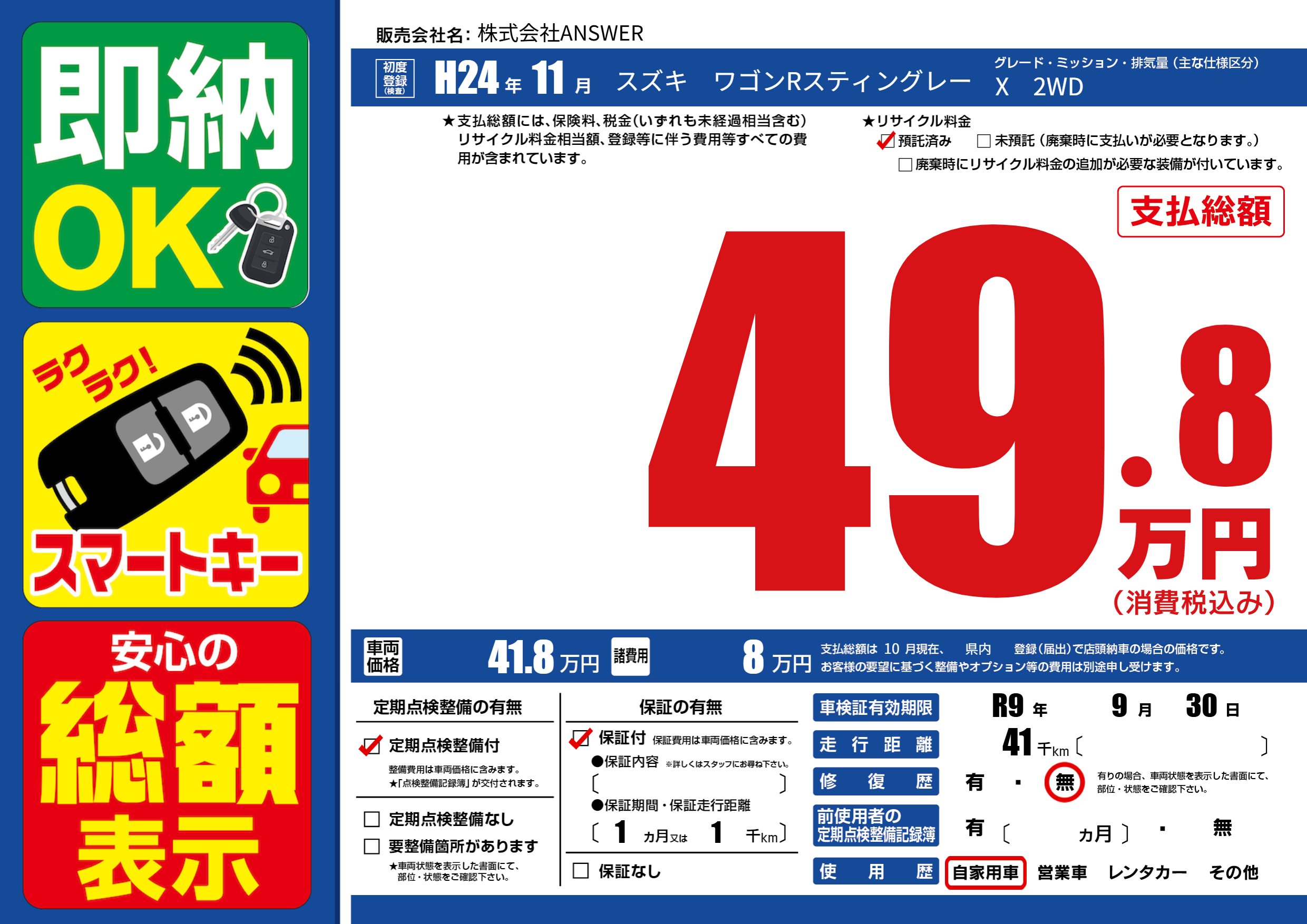 なし | 車検制限 | R9年9月30月 |