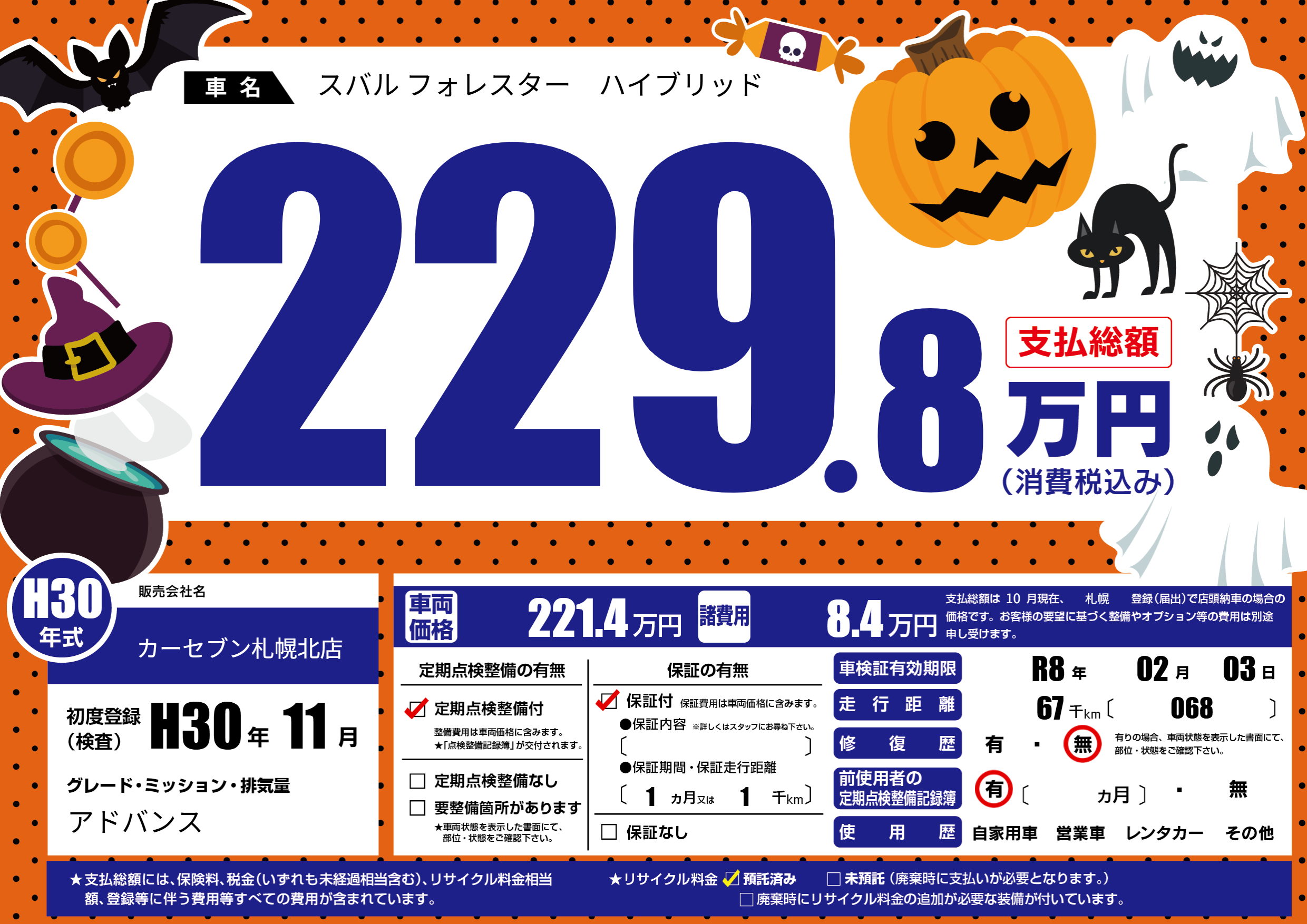 | 走行キロ | 6.7万km | 初年度登録 | H30年11月 |