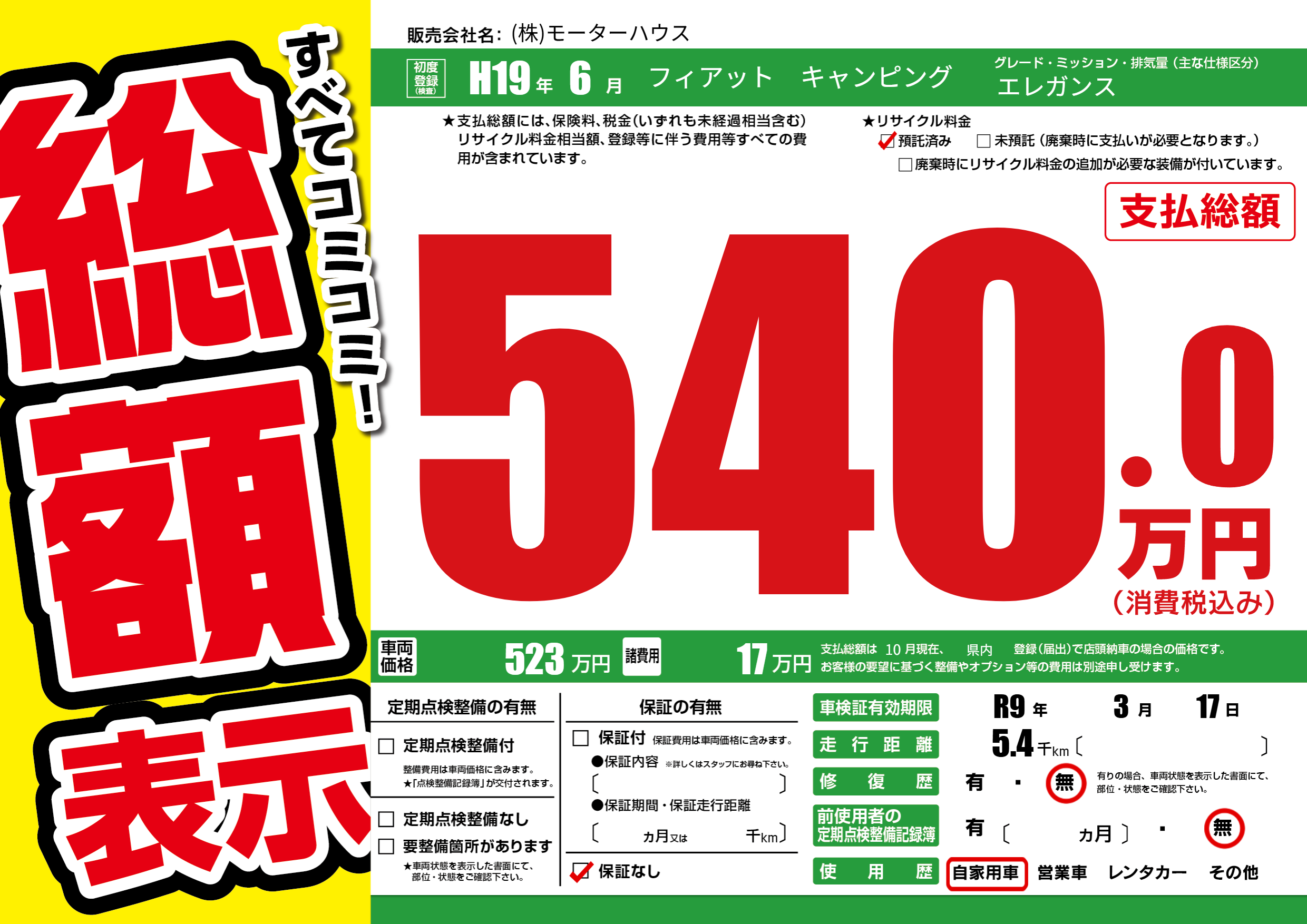 なし | 車検制限 | R9年3月17月 |