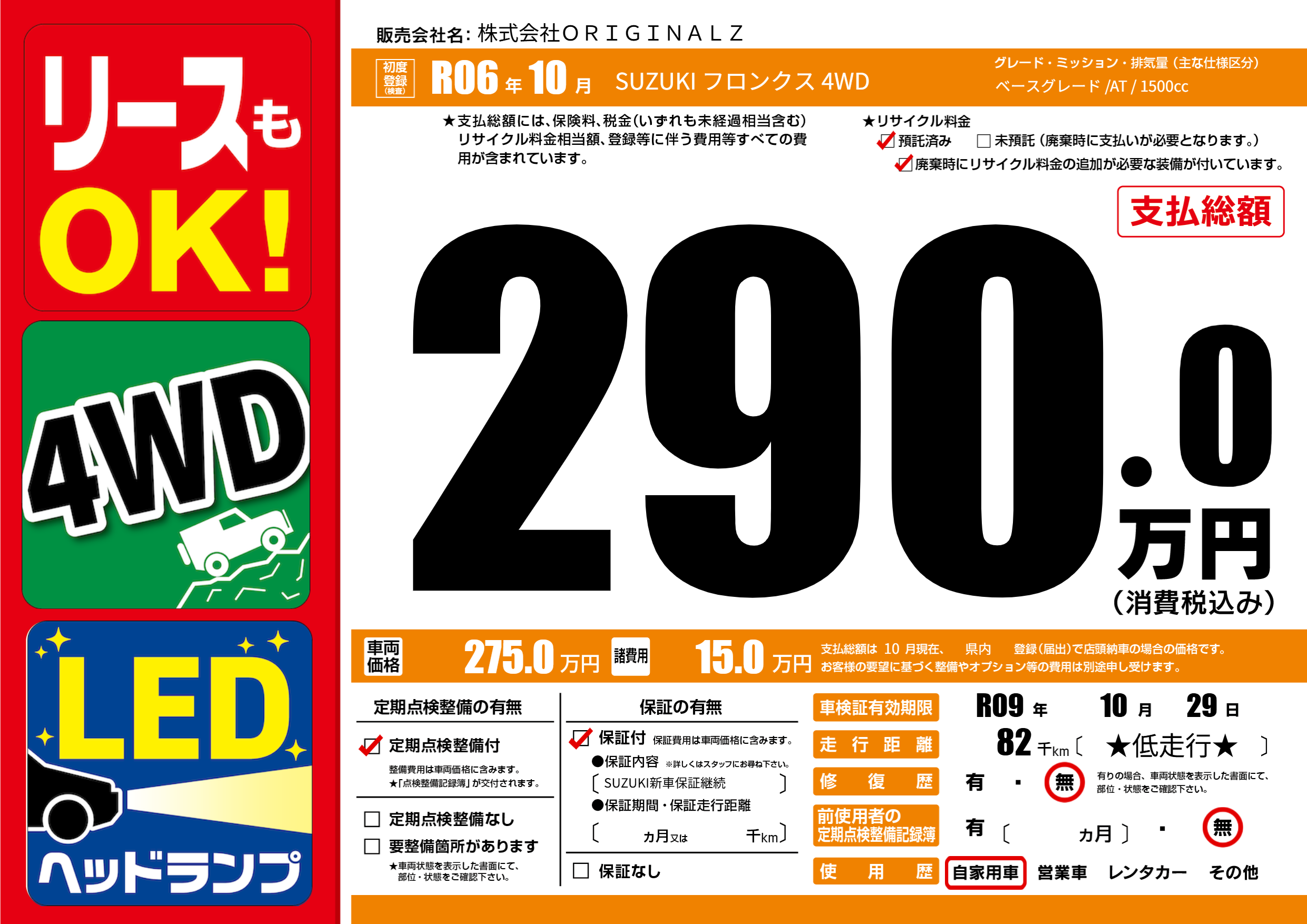 なし | 車検制限 | R09年10月29月 |