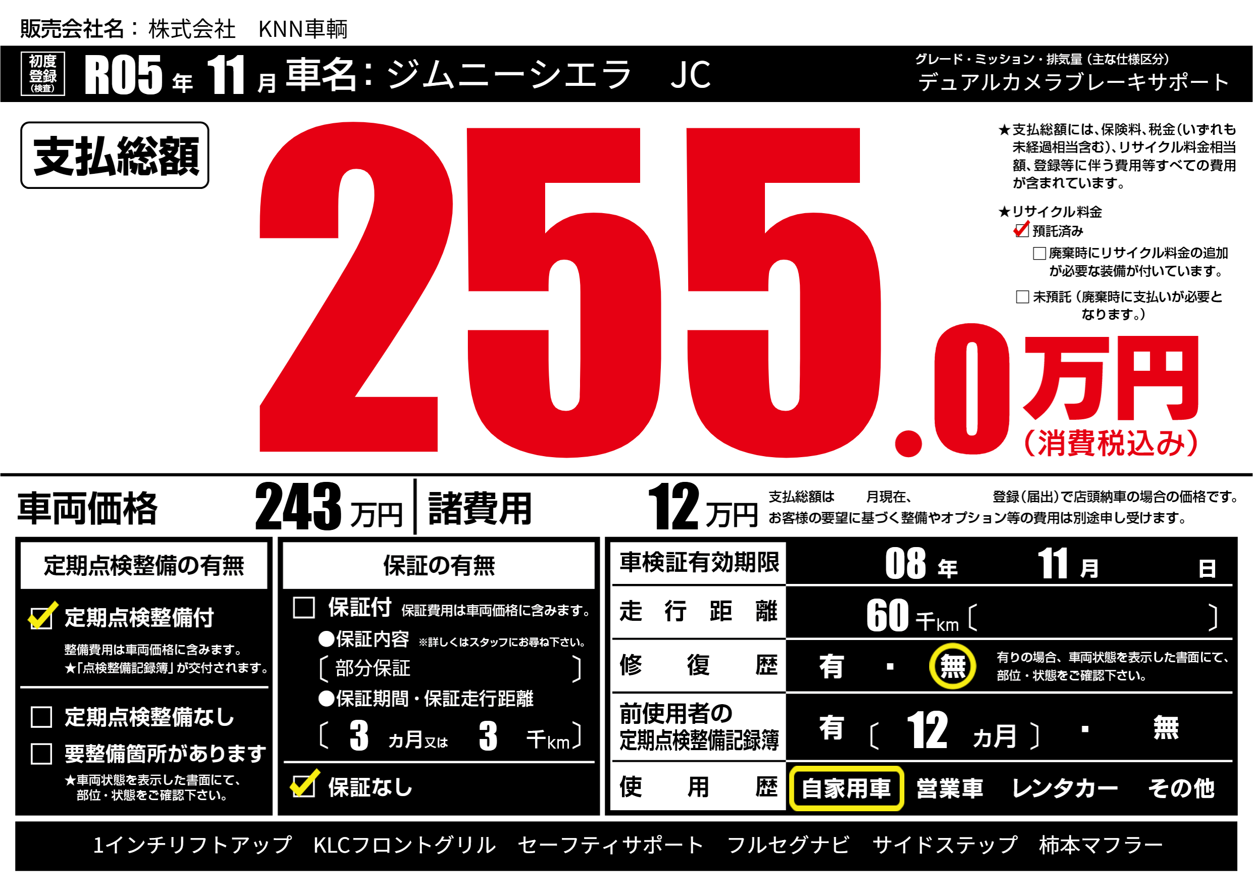 | 車名 | ジムニーシエラ JC | グレード ミッション 排気量 |